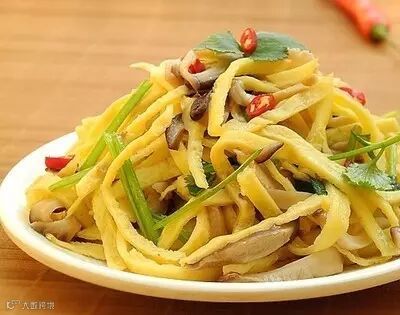 10.将晾凉的蛋皮,切丝。