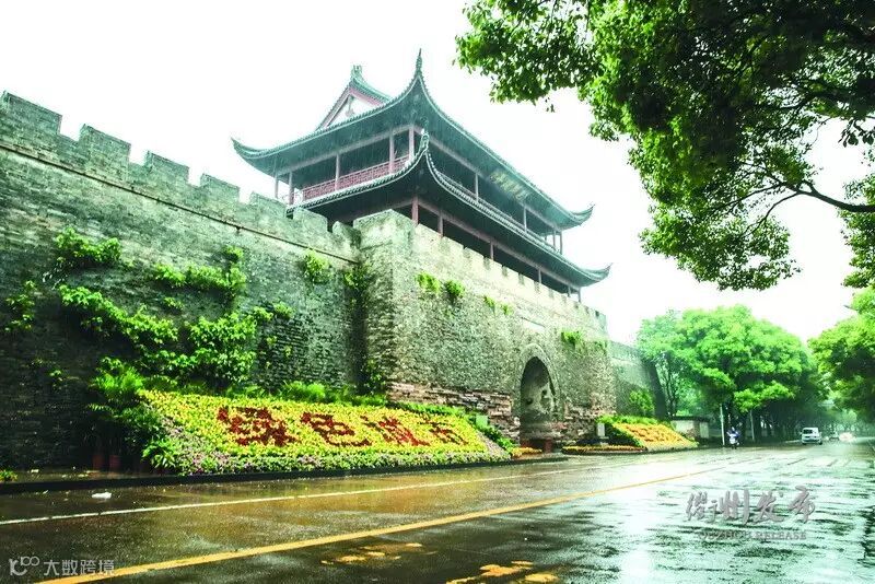 水亭门历史文化街区外景,它和古城墙遗址公园是衢州儒学文化产业园的重要组成部分。