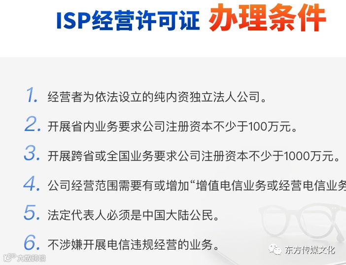 2、 注册资本最低限额为省内ISP业务100万元人民币/全国ISP业务1000万元人民币