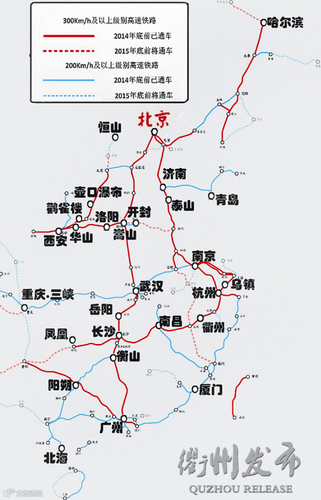 以往到重庆普快都需要近30小时。高铁通车后,衢州上午乘坐9点半的高铁出发到长沙,转高铁到武汉,再转动车,晚上10点过就能到重庆。