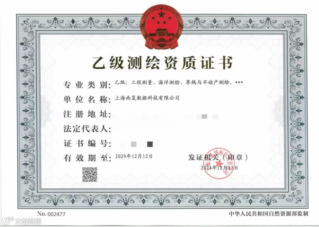 在2024年岁末之际,喜讯传来,我司成功获批上海市规划和自然资源局颁发的测绘资质。在这个日新月异的时代,精准与效率已成为衡量企业竞争力的核心标尺。南复数据,作为数字化调查的引领者,始终以技术创新为驱动,以专业精神为基石,致力于为客户提供更优质的测绘调查服务。