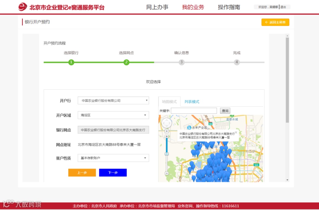 您可以选择平台所提供的任一一家银行网点预约银行开户。业务提交后,银行将联系您安排开户事宜。