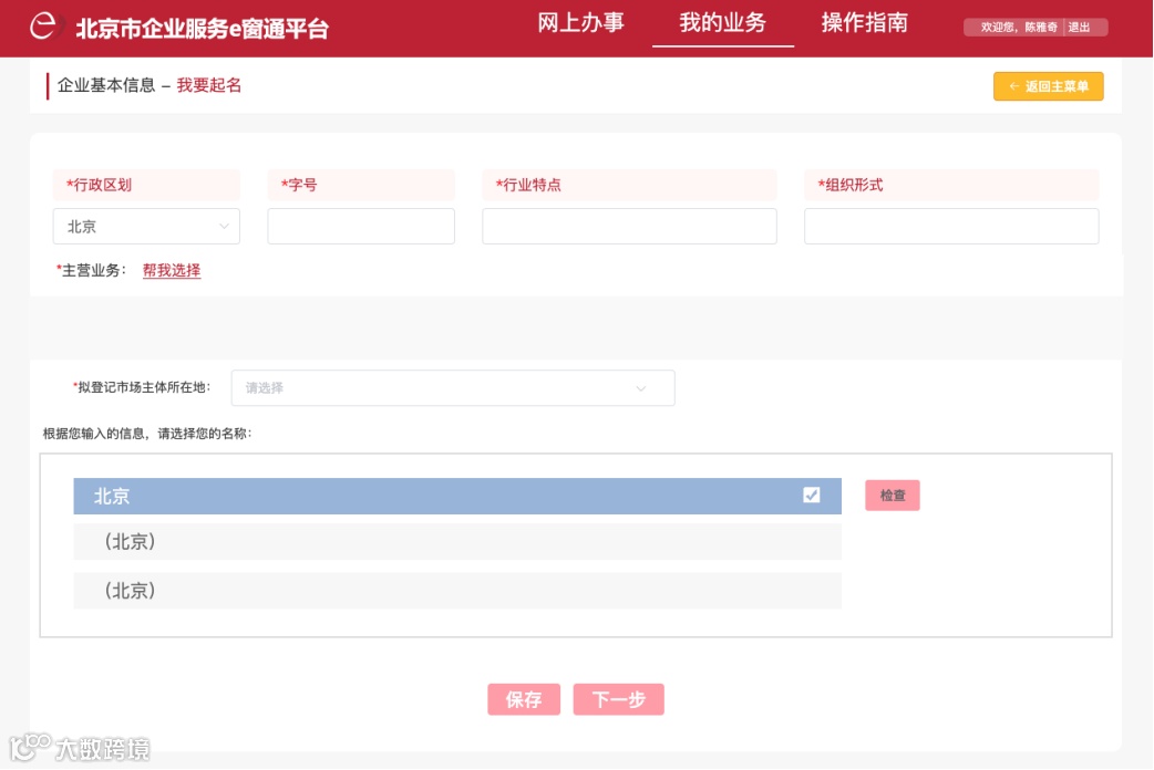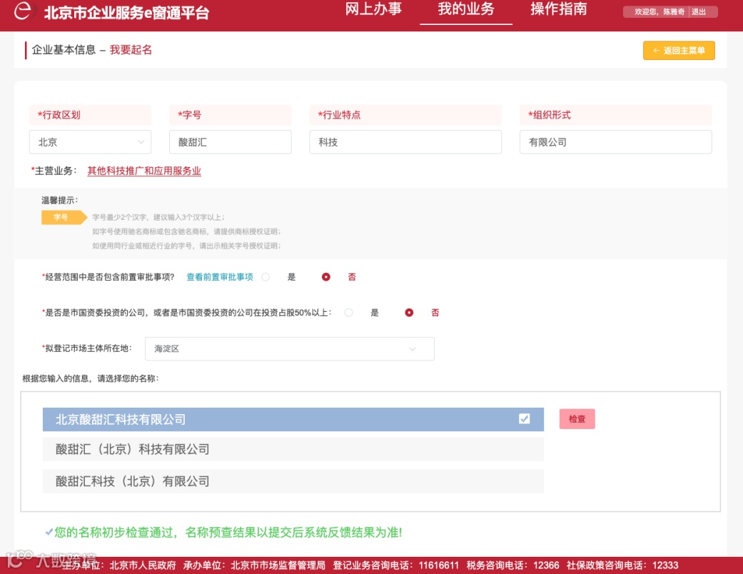 系统会对您提交的名称进行自动检索。