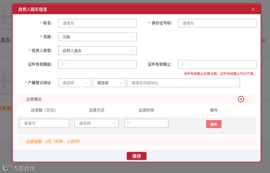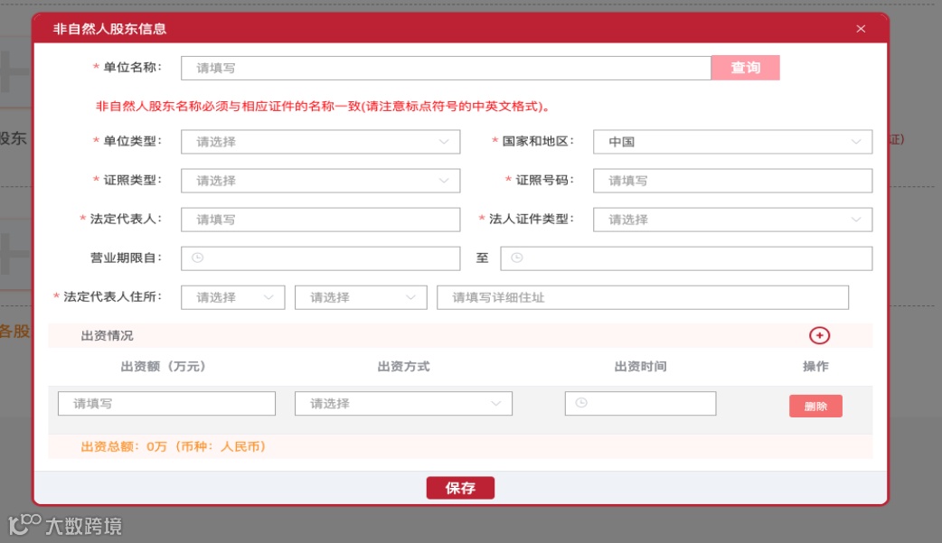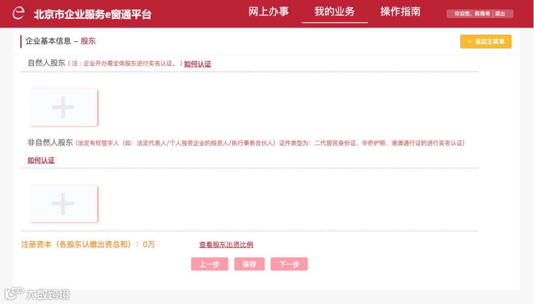 6.进入股东信息填报页面,按照提示填写自然人股东和非自然人股东信息。