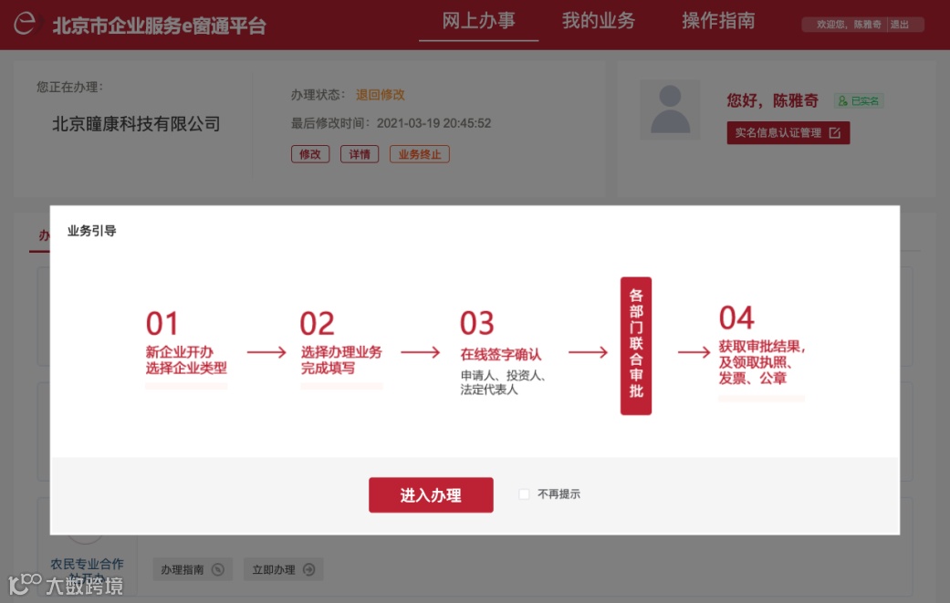 3.了解业务流程后,请点击“进入办理”。
