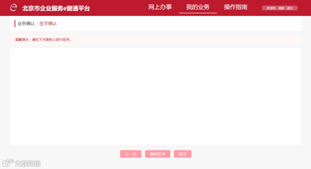 待签字人输入关键信息后,进入我的业务列表选择企业进行在线签字确认。