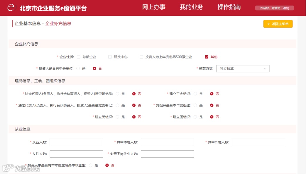11.录入企业补充信息。