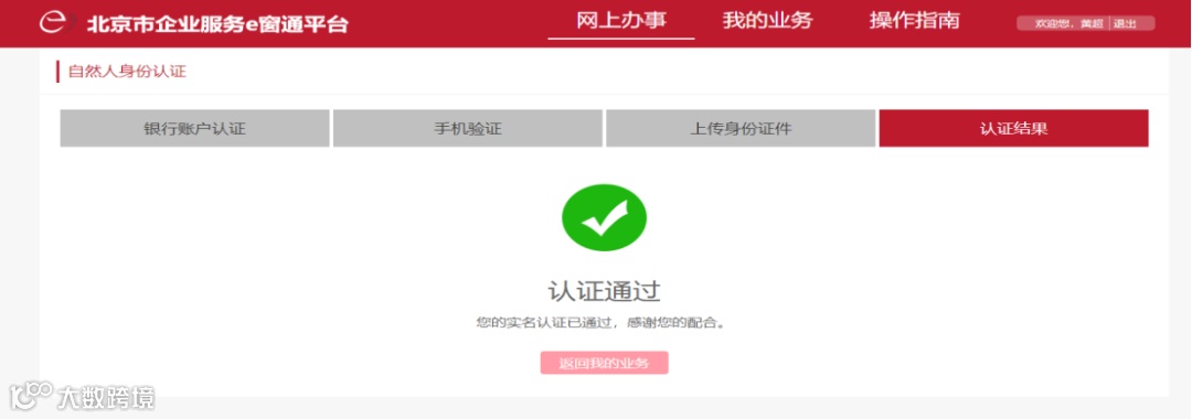 e窗通网页认证,需要身份认证人以自然人身份登录e窗通,未完成身份认证的,系统提示如下: