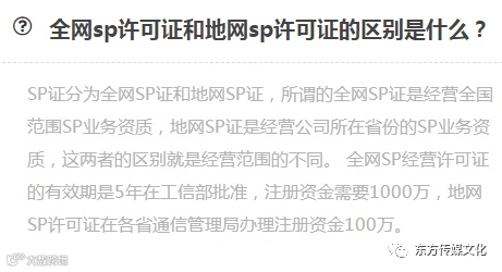 SP经营许可证“信息服务业务(不含互联网)”资质,官方标准称为增值电信业务经营许可证(不含互联网信息服务)。业内俗称为SP许可证,全国的称为全网SP证,它属于第二类增值电信业务中的信息服务业务(业务代码:B25)。