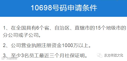 1068短号码是固定12位短信码号,企业在全国具有3个省、自治区、直辖市的6个市的分公司或子公司,其中商业银行只需要有6个市的要求就可以。码号不可以扩展,仅服务于自有业务产品,不可为第三方公司提供短信息服务,实现企业专有短号码,企业的短信显示号码统一,具有品牌效应。即形如10698XXX(X=0~9),可扩展用于标识接入在平台后的内容提供主体,管理位长为12位。