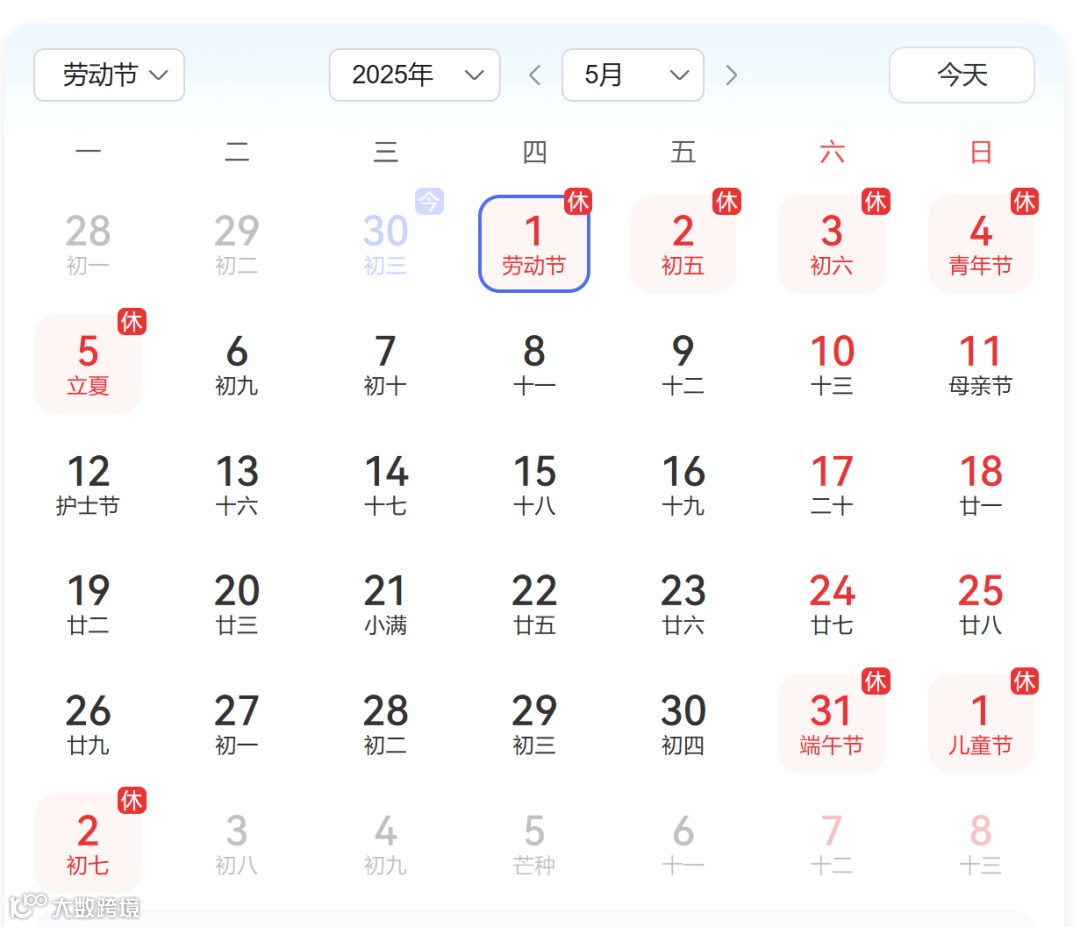 2025年“五一劳动节”公司放假时间为:5月1日(星期四)至5日(星期一)放假调休,共5天。5月6日(星期二)上班。