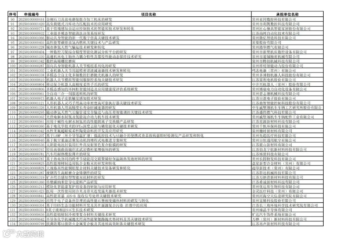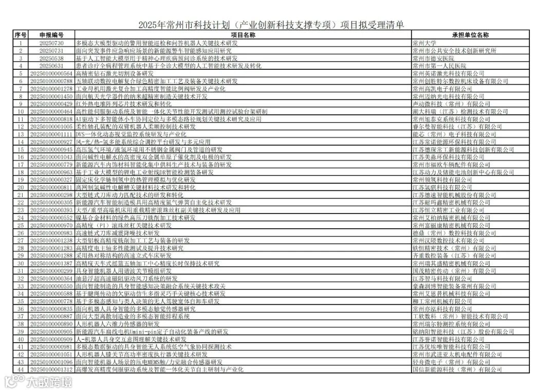 附件:2025年常州市科技计划拟受理项目清单