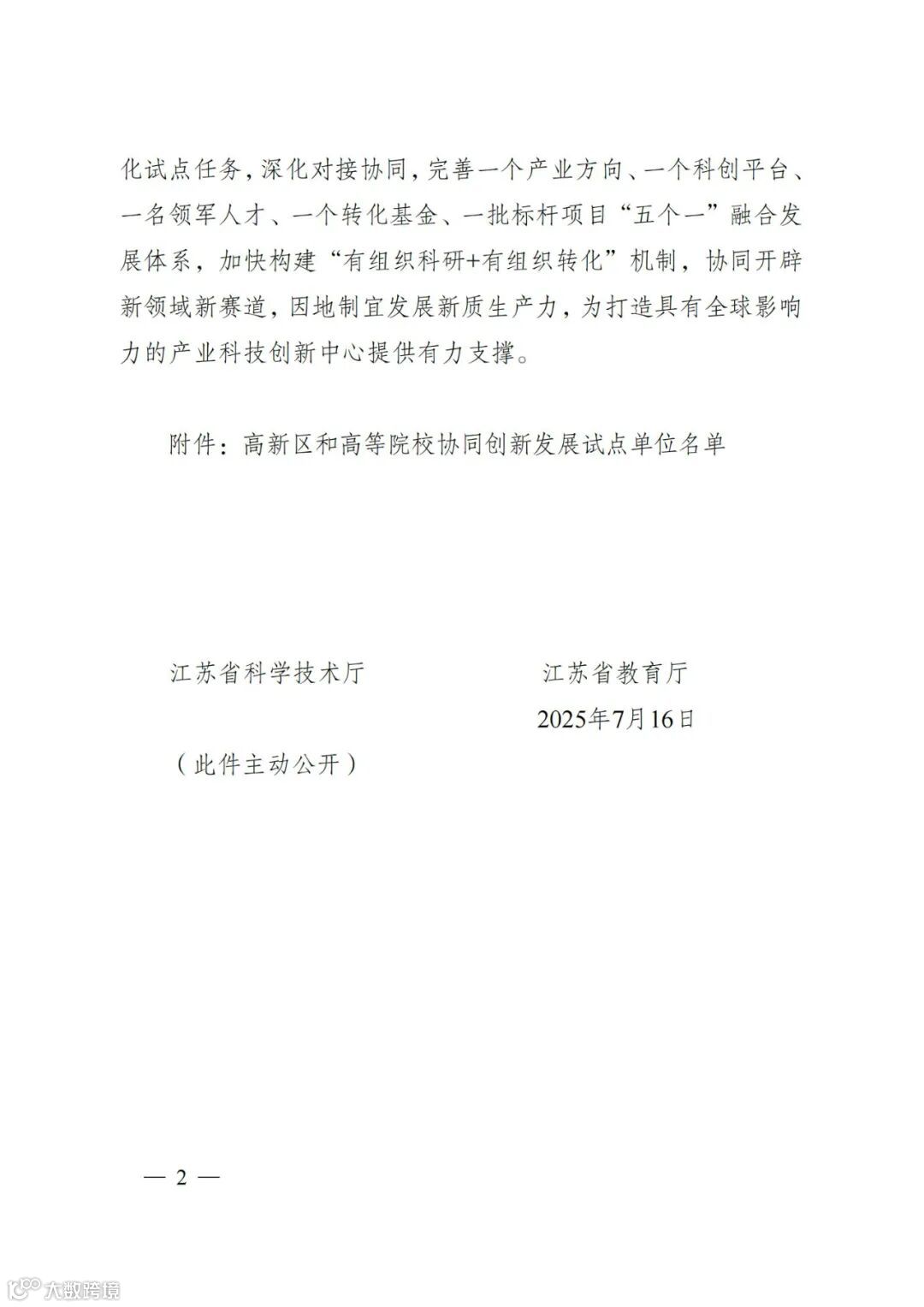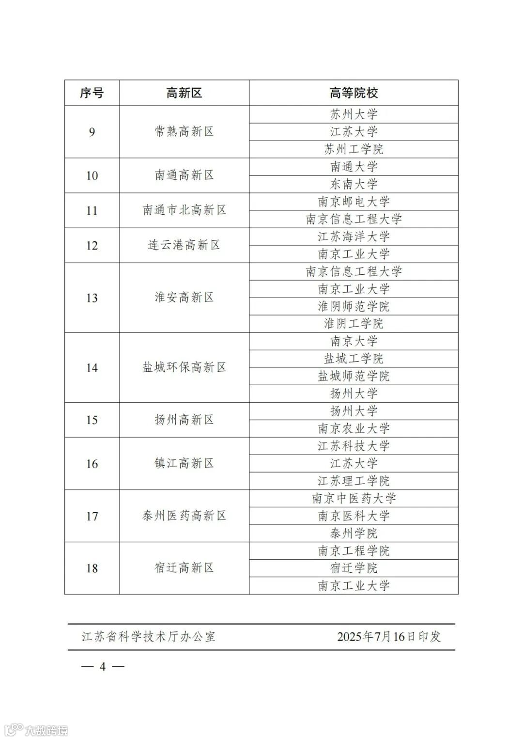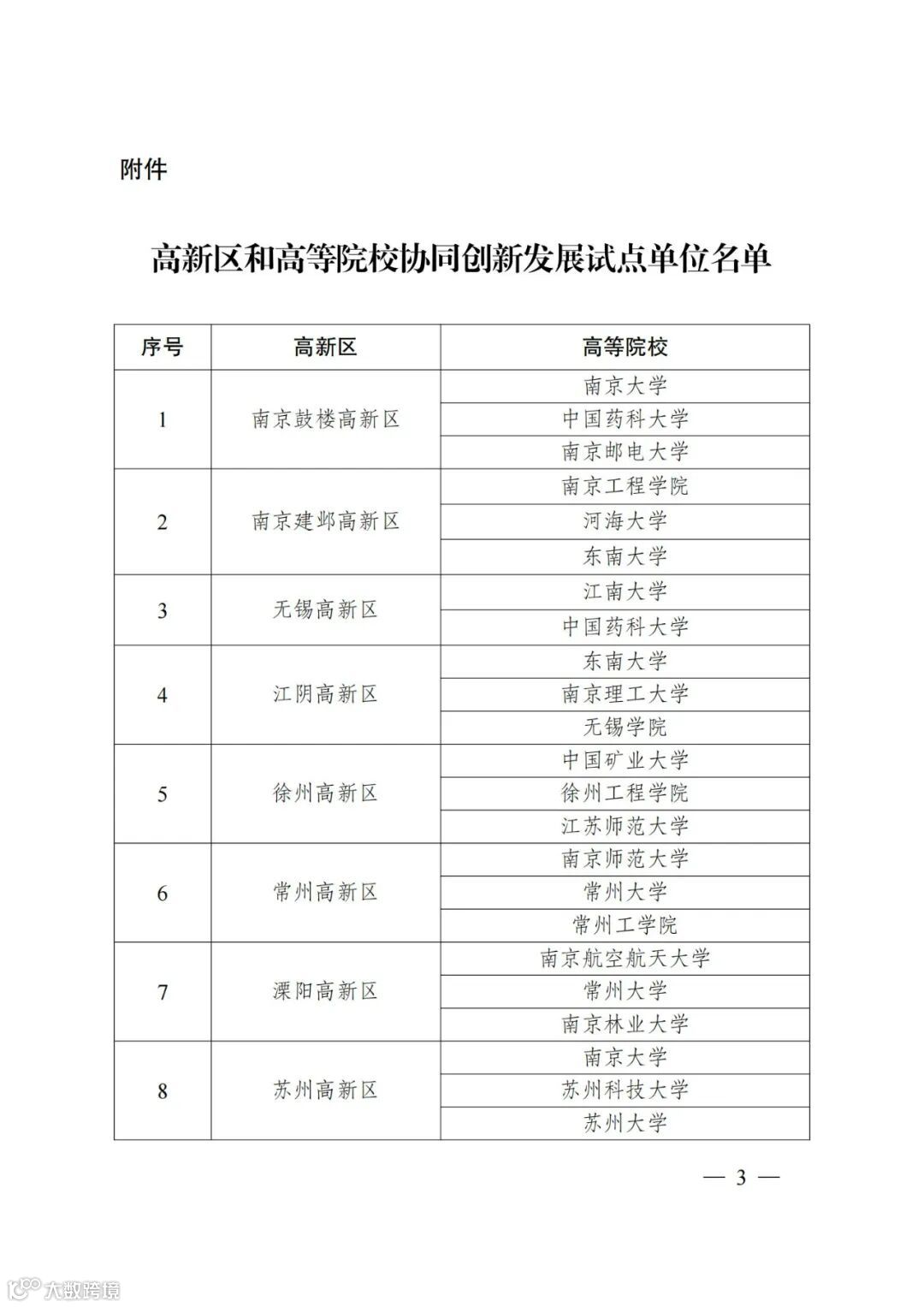 〖通知〗关于公布高新区和高等院校协同创新发展试点单位名单的通知