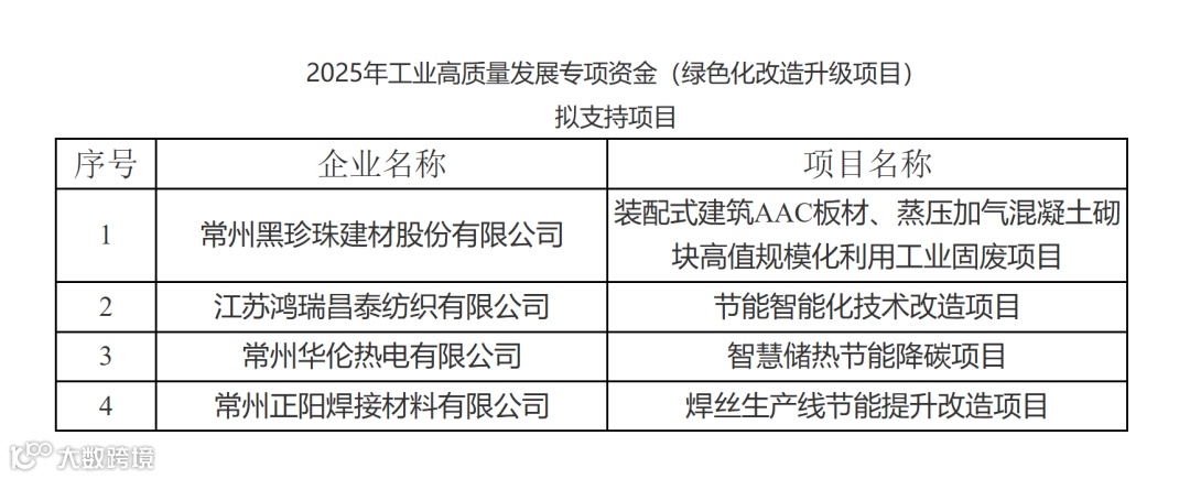 根据《关于组织申报2025年工业高质量发展专项资金项目的通知》(常工信综合〔2025〕124号)、《常州市节能及发展循环经济专项资金实施细则》(常工信节能〔2024〕55号)要求,经申报单位申报,各辖区工信局(经发局)、财政局初审,及我局组织相关行业专家进行评审、节能量审核等程序。现将2025年工业高质量发展专项资金(绿色化改造升级项目)拟支持项目公示如下,公示期为2025年11月14日-11月20日。