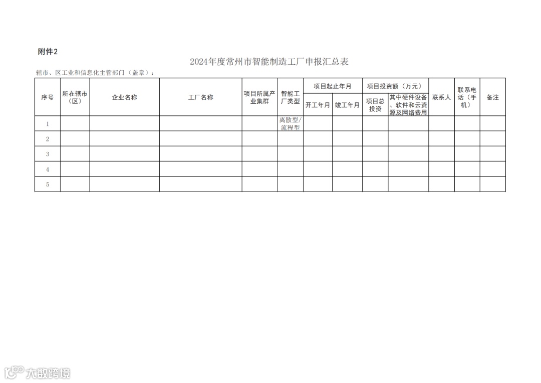 为贯彻落实《省工业和信息化厅 省财政厅关于组织开展2024年江苏省制造业“智改数转网联”示范企业申报的通知》(苏工信融合〔2024〕94号)精神,积极推进企业实施智能化改造、数字化转型、网络化联接,现组织开展2024年度常州市智能制造工厂申报工作。有关事项通知如下: