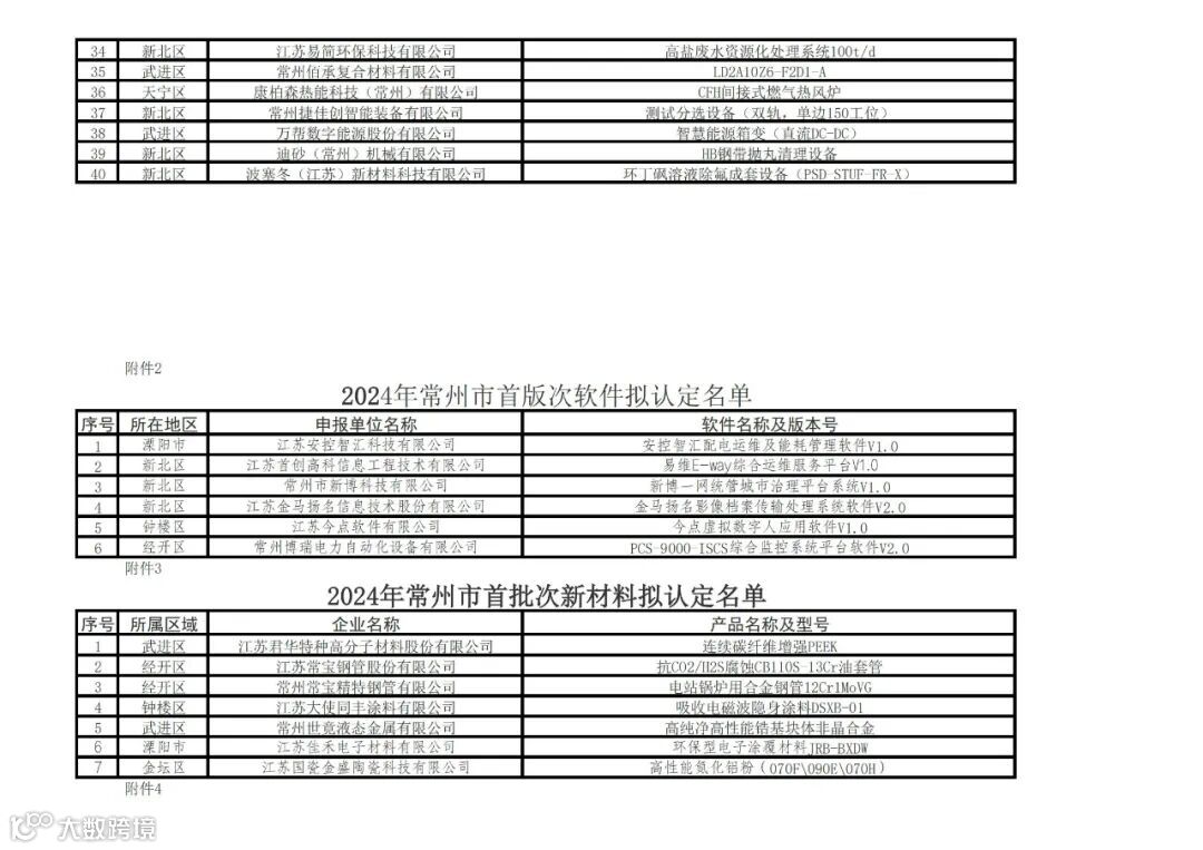 1.2024年常州市首台(套)重大装备拟认定名单