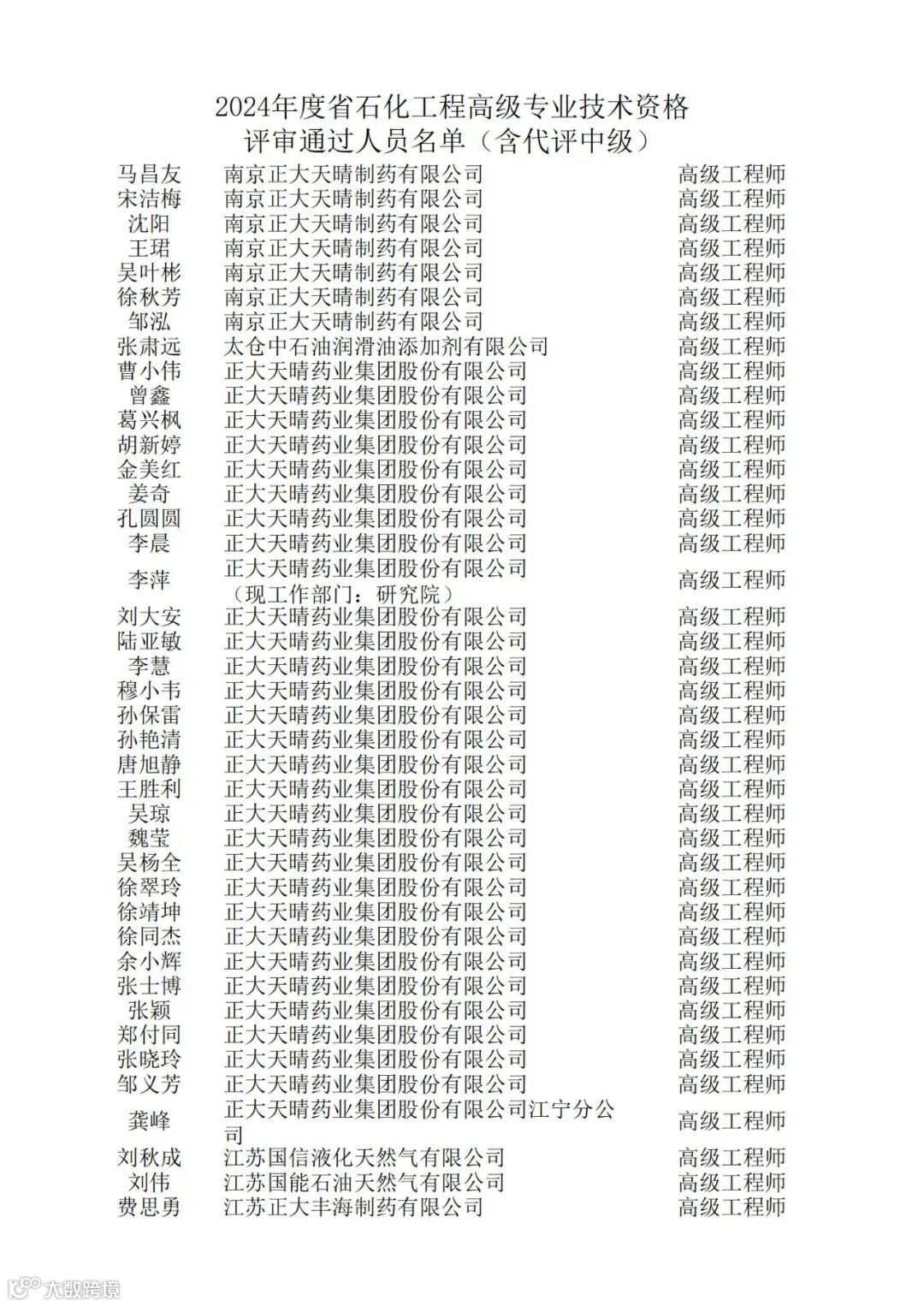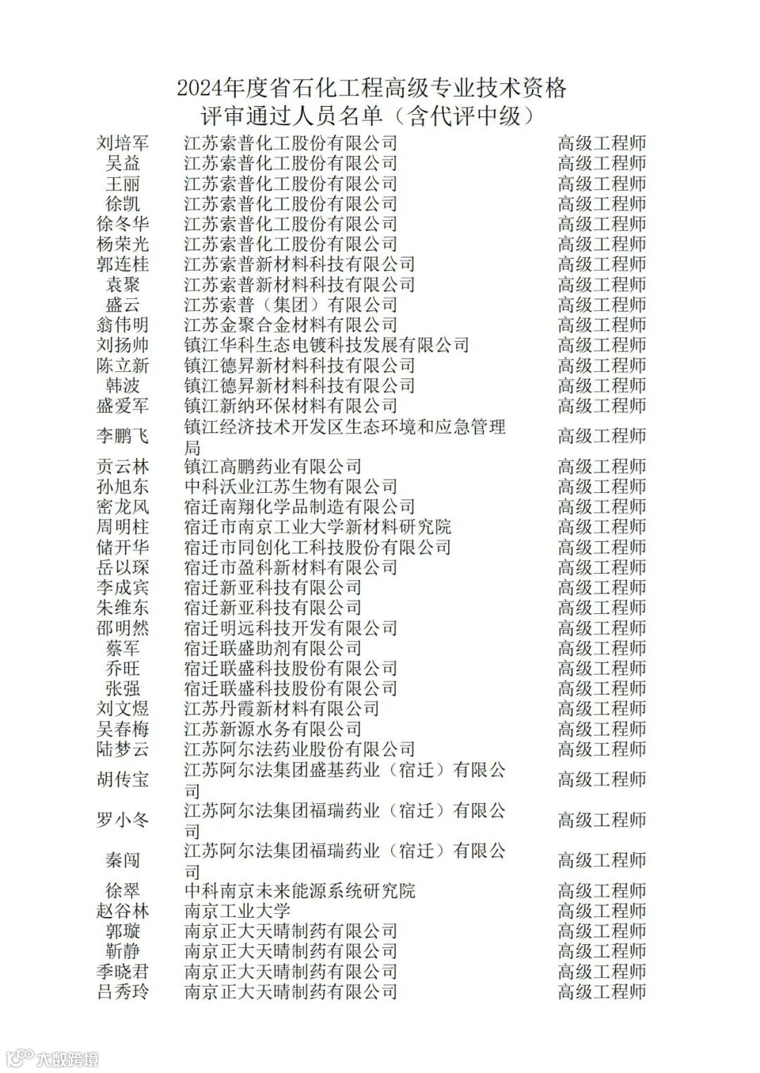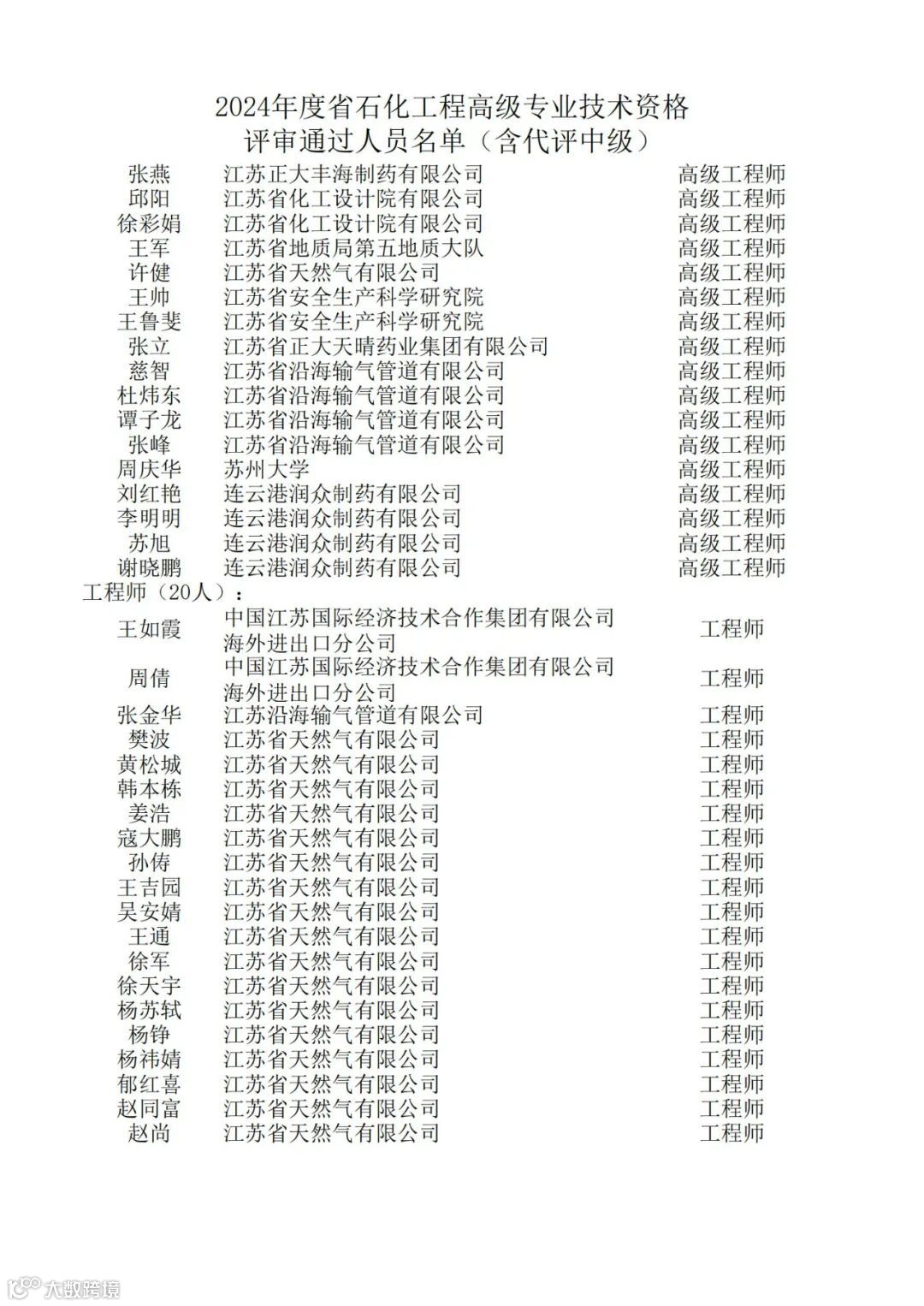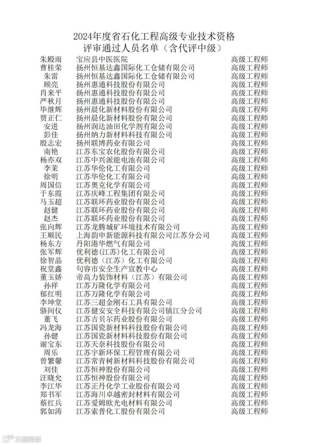 〖公示〗2024年度省石化工程高级专业技术资格评审委员会评审结果公示