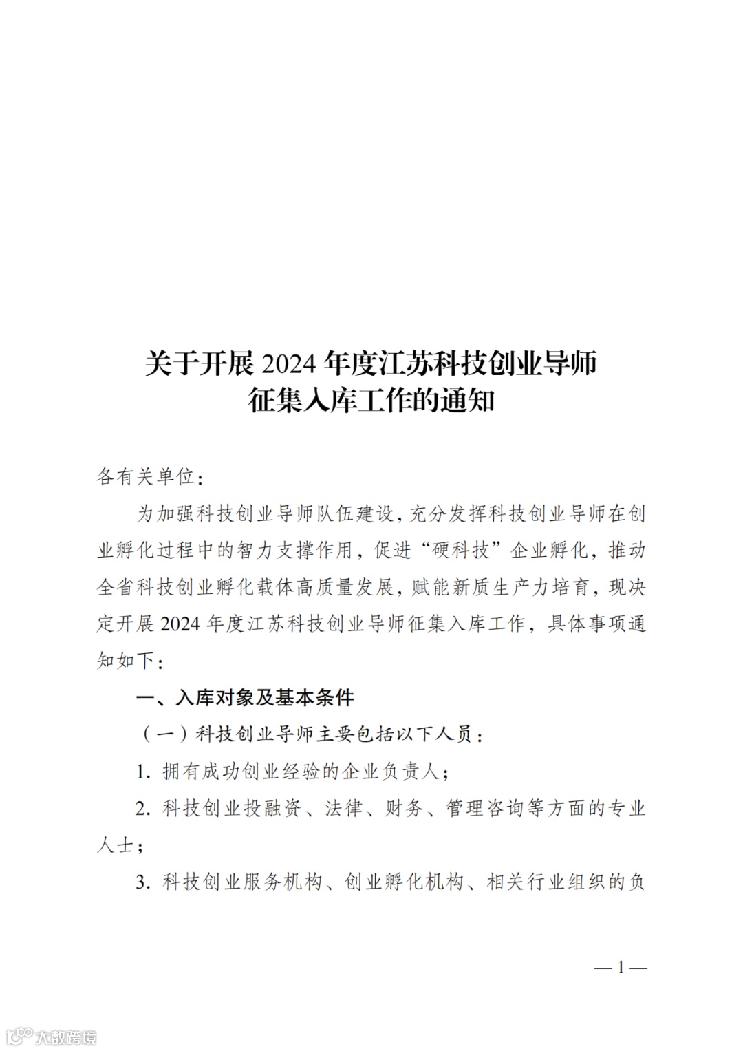 关于开展2024年度江苏省科技创业导师征集入库的通知