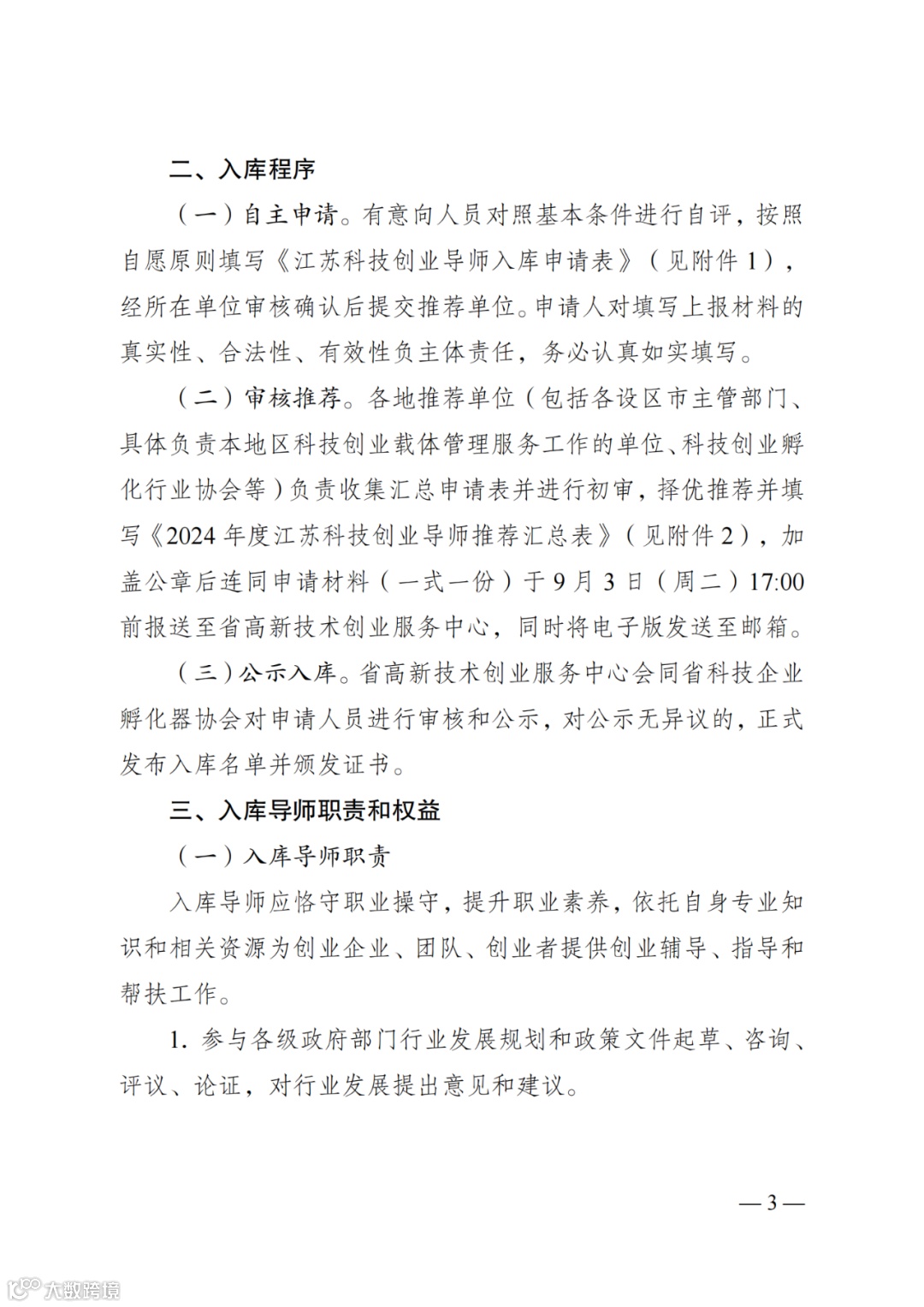 《关于开展2024年度江苏科技创业导师征集入库工作的通知》(苏高创〔2024〕25号)已于日前正式发布,现转发给你们,并要求如下: