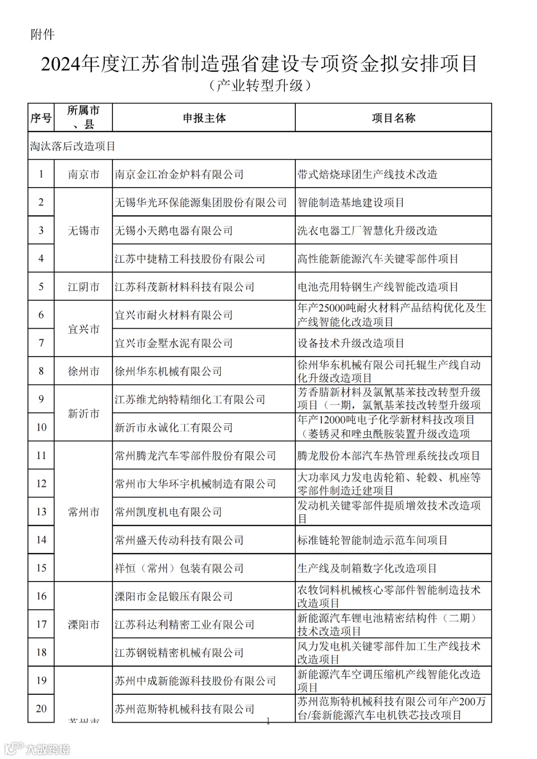 根据省工信厅、省财政厅《关于组织2024年度江苏省制造强省建设专项资金项目申报的通知》(苏工信综合〔2024〕102号),经规定程序,拟支持南京金江冶金炉料有限公司“带式焙烧球团生产线技术改造”等100个产业转型升级项目,现予公示(见附件)。公示期:2024年9月3日-9月9日。