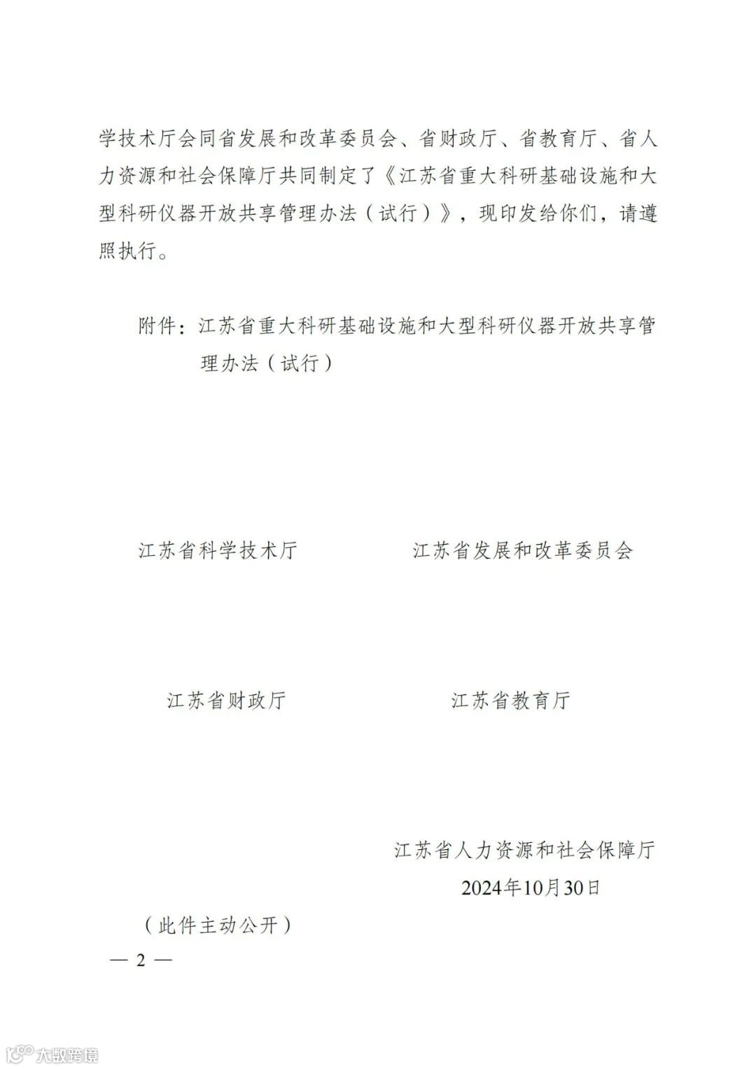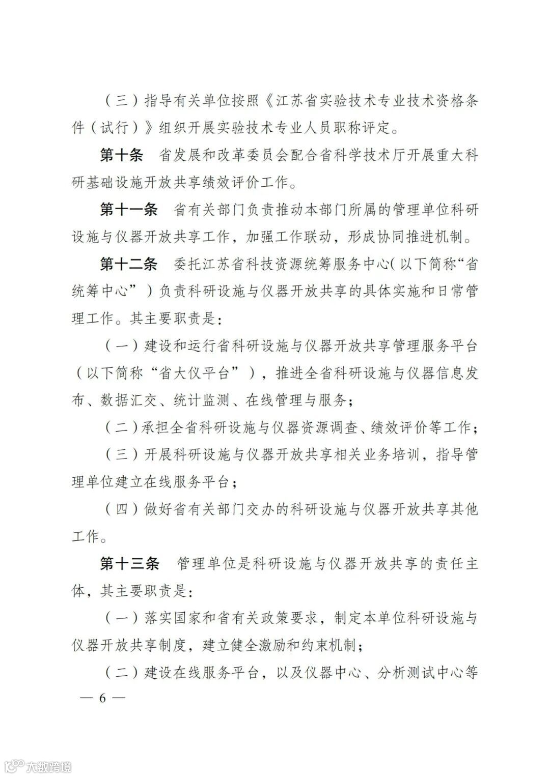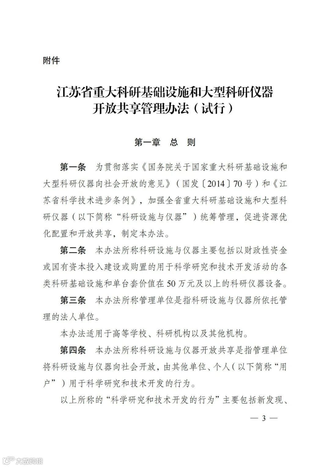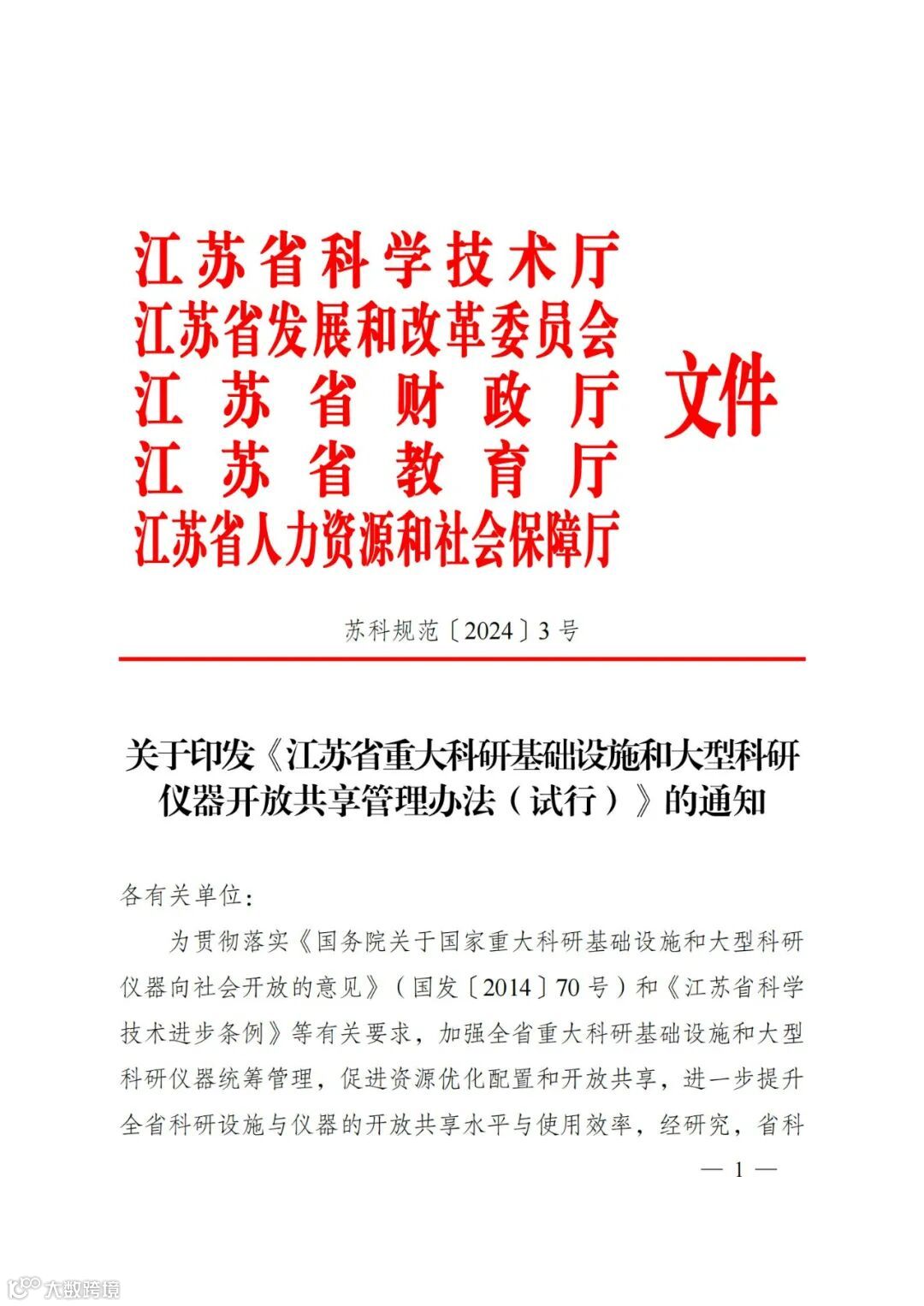 〖通知〗关于印发《江苏省重大科研基础设施和大型科研仪器开放共享管理办法(试行)》的通知
