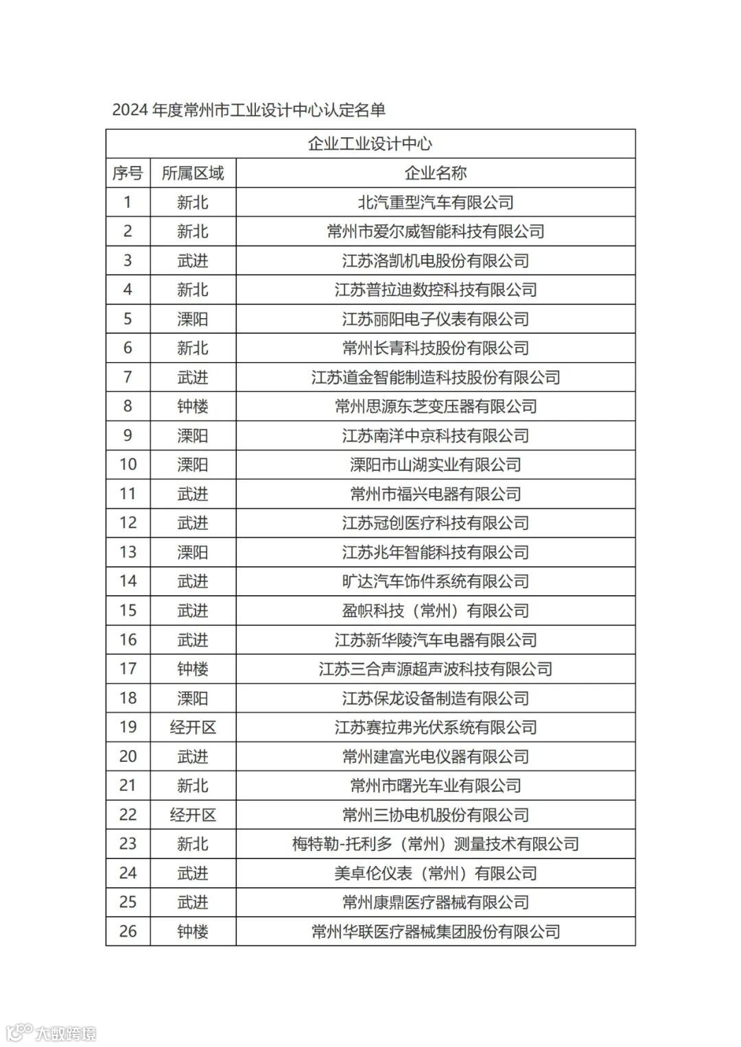 〖公示〗关于公布2024年度常州市工业设计中心认定名单的通知
