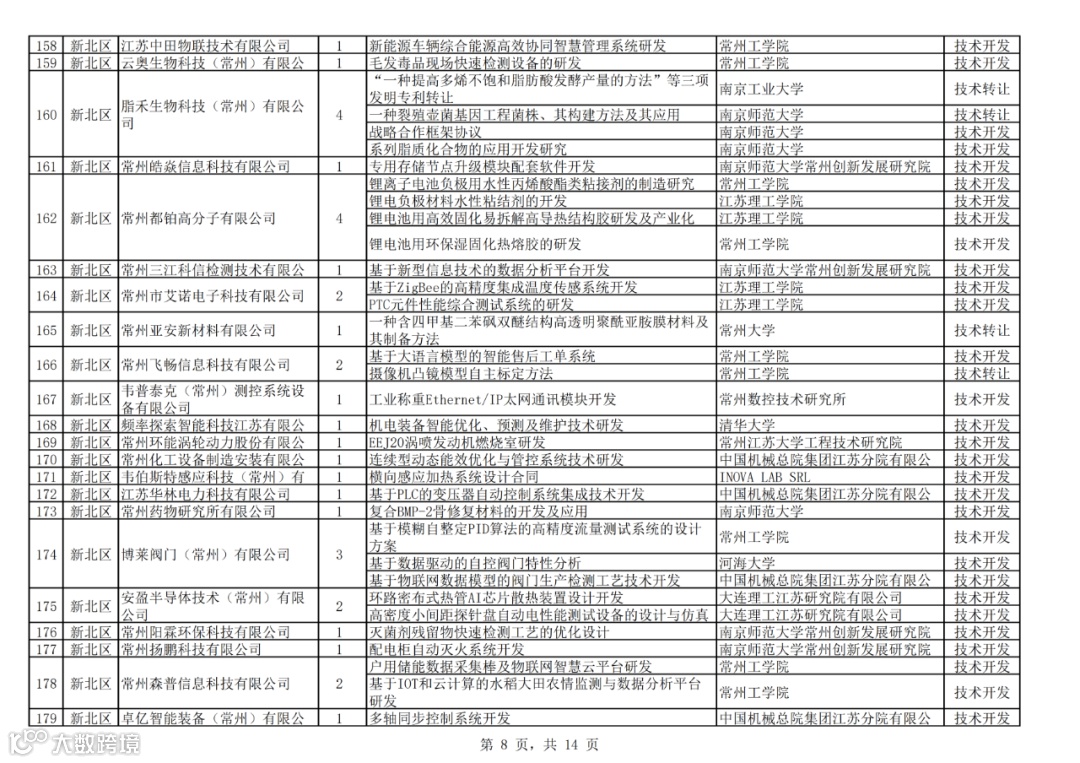 根据《市政府关于加快推进全省技术转移体系建设的实施意见》(常政发〔2018〕146号)、《常州市技术转移奖补资金实施细则》(常科发〔2022〕77号)文件精神,按照市科技局《关于组织2024年常州市技术转移奖补资金申报工作的通知》要求,经审核,常州市科技局对符合要求的技术吸纳方、技术转移机构及技术经纪(经理)人现予公示,
