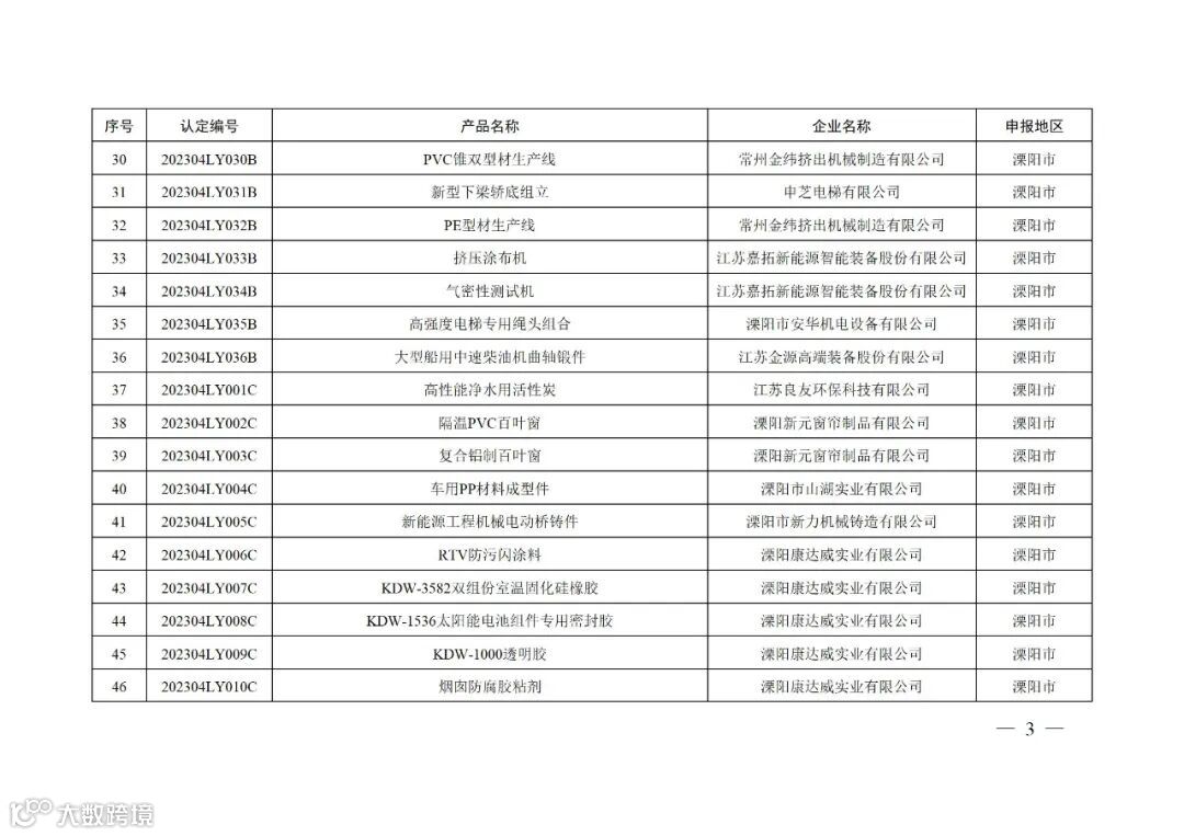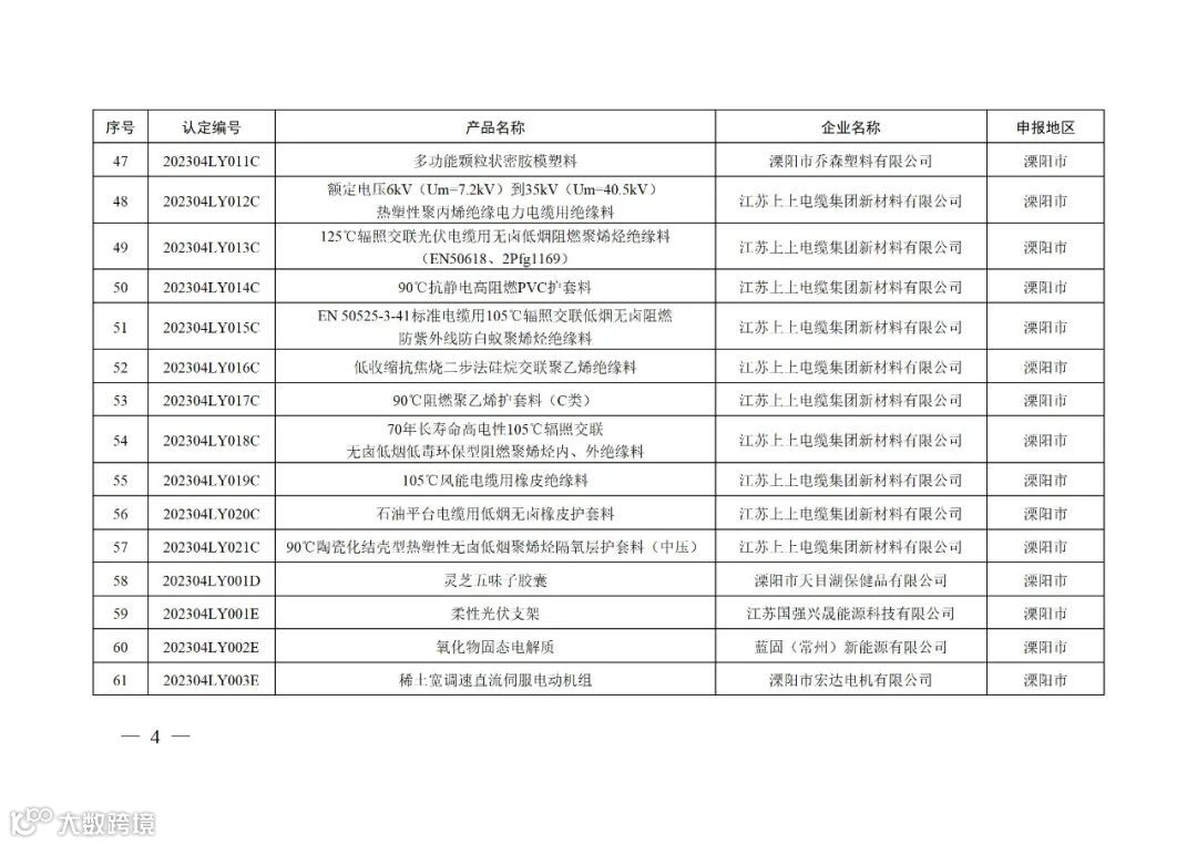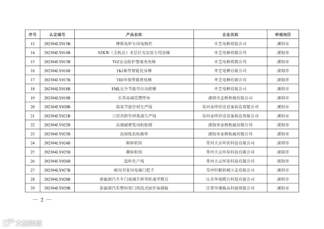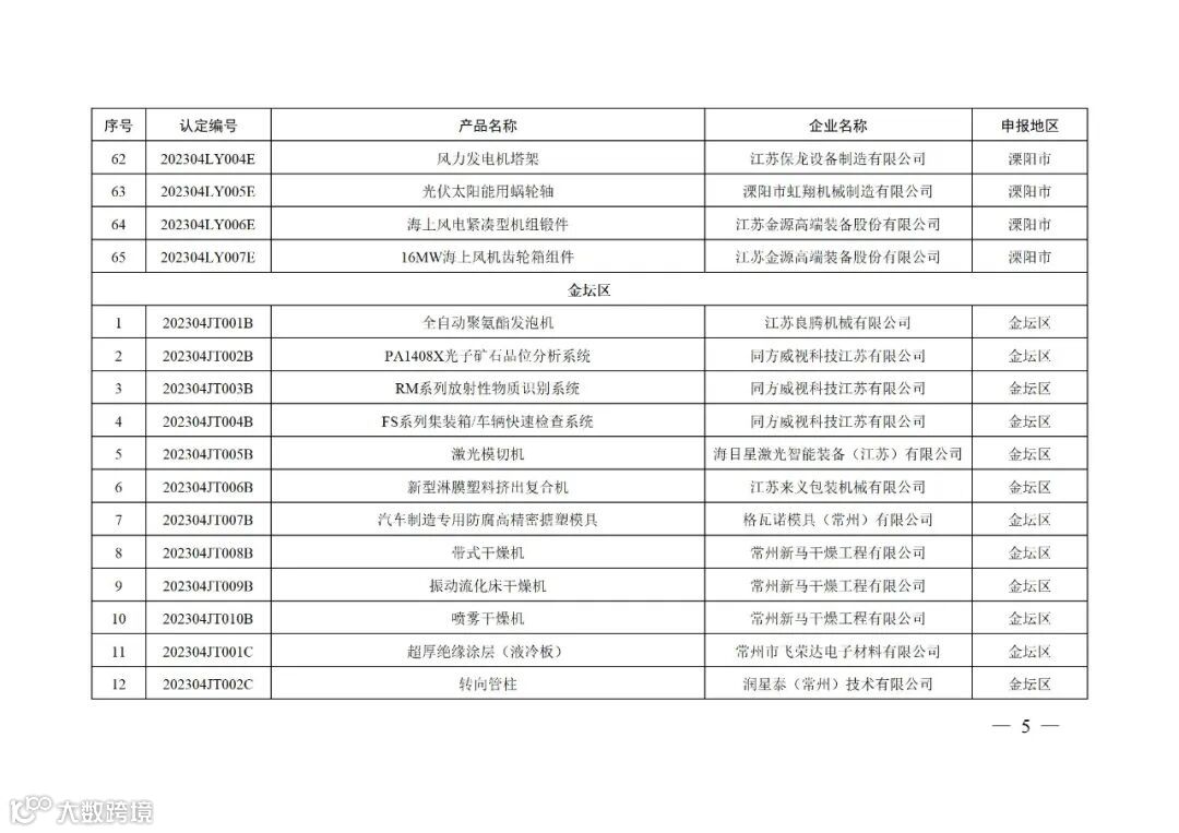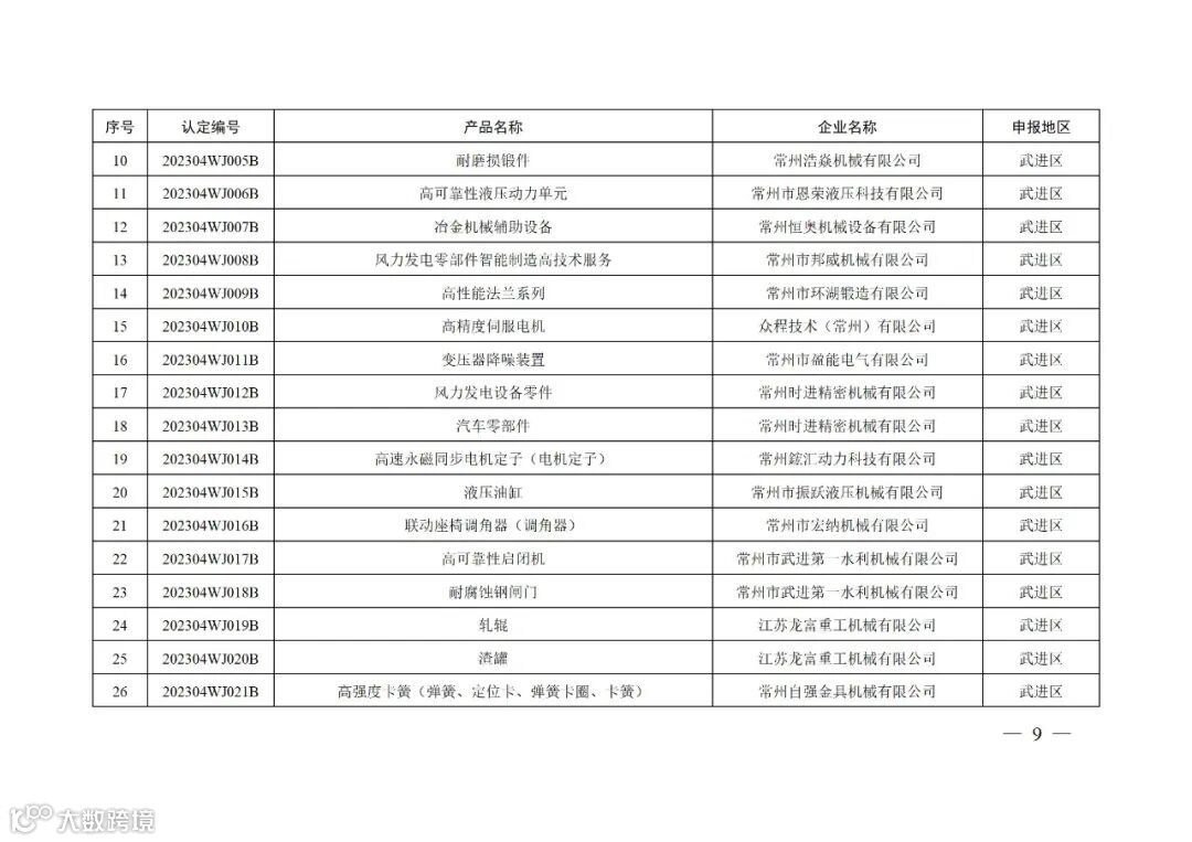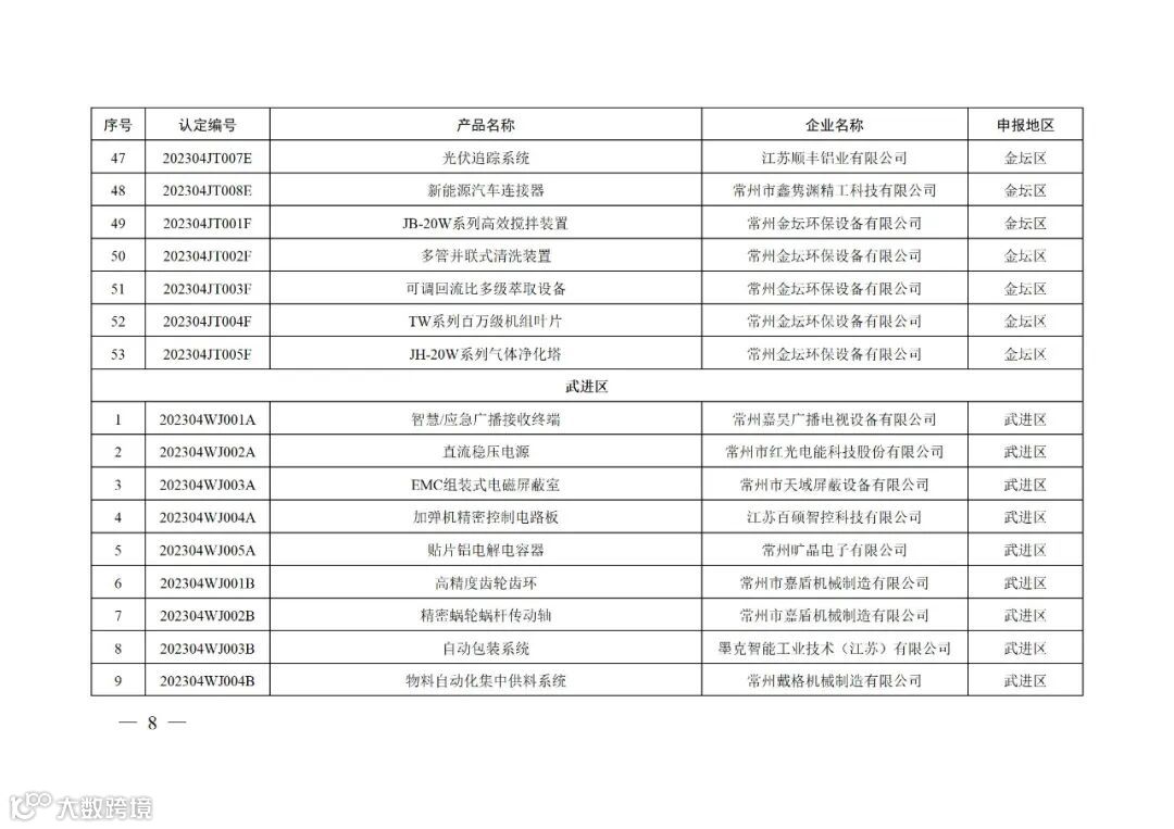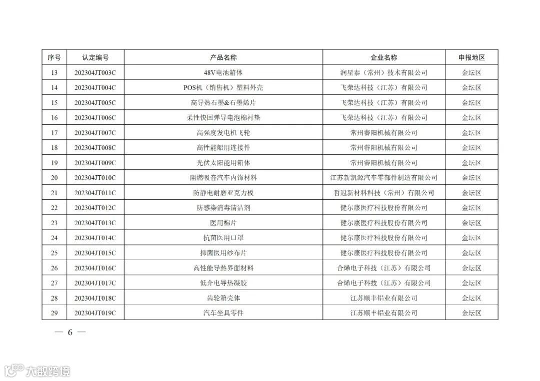 〖公示〗关于认定2023年第四批常州市高新技术产品的通知