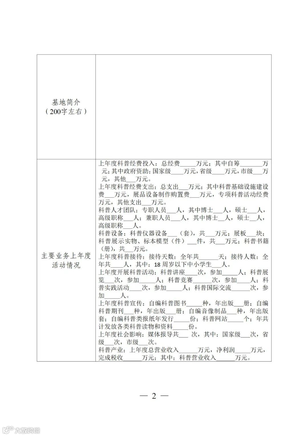 2.申报材料一式2份,并提供电子版。各地区科普教育基地备案材料加盖公章后送至辖市(区)科技局,辖市(区)科技局进行汇总、核实,