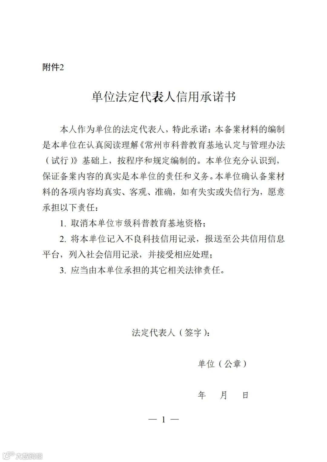2.单位法定代表人信用承诺书