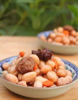 6、转中火煮至花生9成熟时,加入枸杞子,转小火煮10分钟。
