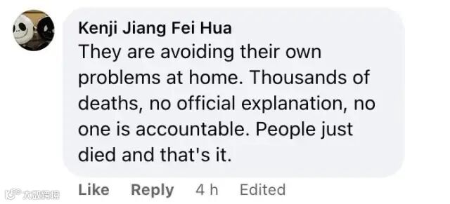 脸书网友Kenji Jiang Fei Hua说:“西方国家对自己的问题视而不见,大量的死亡,没有官方解释,没有人被追责,人们悄无声息死去。”