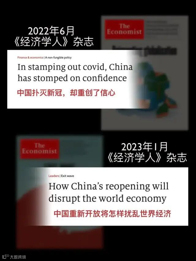 去年6月,《经济学人》刊登文章“中国扑灭新冠,却重创了信心”,声称中国严格的防疫措施使线上经济蓬勃发展,是因防疫政策使“真实生活”失去了活力。然而,同样是这家媒体,今年1月又“画风突变”,刊登了一篇题为“中国重新开放将怎样扰乱世界经济”的文章,声称中国防疫政策调整、重新开放将对世界经济产生“痛苦的副作用”。