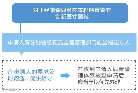 第三类创新医疗器械有专人沟通、提供指导,并享有“四优先”:优先检验、优先体系核查、优先技术审评、优先行政审批。