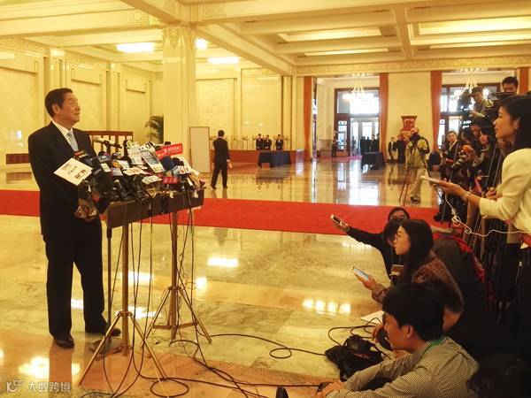 ▲于广洲在两会“部长通道”接受采访 王志中/摄