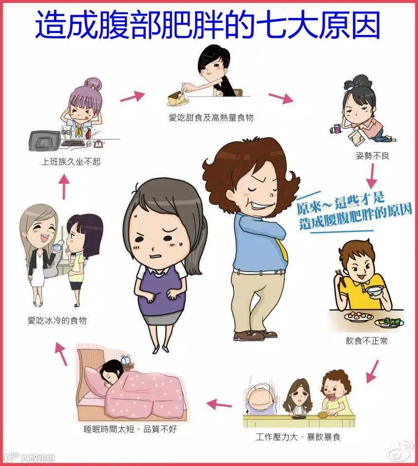 下面先看看引起腹部肥胖的原因,然后对因找对策: