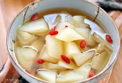因热病引起的口干燥咳、身热烦渴可用梨与荸荠各半,酌加桑叶煮水,有滋阴清热、镇咳效果。上火引起的声嘶咽燥、喉痒口干,可用梨与菊花煮水,加少量冰糖,煮开放凉后频频下咽,可有养阴润喉作用。