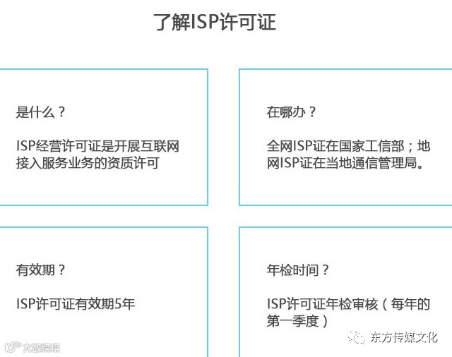 ISP经营许可证分为全网和地网两种:全网ISP经营许可证的申请机构是工信部,地网ISP经营许可证的申请机构是地方的通信管理局。ISP许可证的业务应用:利用接入服务器和相应的软硬件资源建立业务节点,并利用公用电信基础设施将业务节点与因特网骨干网相连接,为各类用户提供接入因特网的服务。用户可以利用公用电话网或其它接入数段连接到其业务节点,并通过该节点接入因特网。