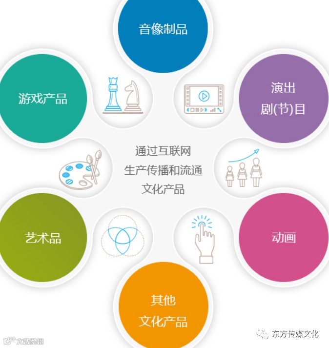 通常包括:专门为互联网而生产的互联网文化产品、将文化产品以一定的技术手段制作、复制到互联网上传播的互联网文化产品。