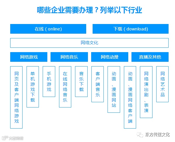 非游戏类网络文化经营许可证就是指经当地文化局批准,从事经营性互联网文化活动的互联网信息服务提供者,其中经营性互联网文化活动是指以营利为目的,通过向上网用户收费或者电子商务、广告、赞助等方式获取利益。通过互联网文化产品及其服务活动,根据经营服务不同,非游戏类网络文化经营许可证可划分为:动漫文网文、音乐文网文、艺术品文网文、展览/比赛文网文