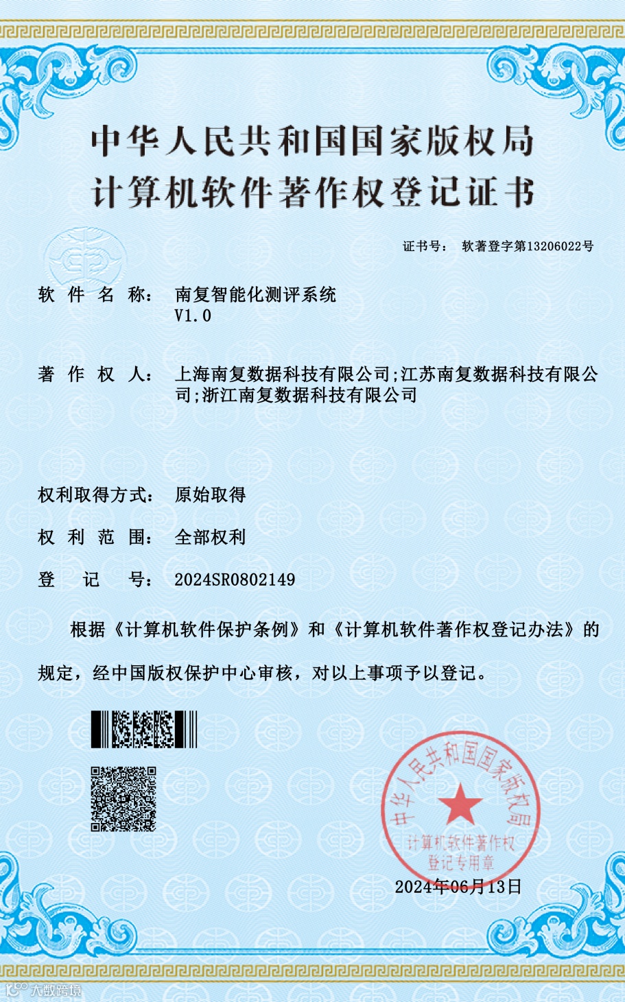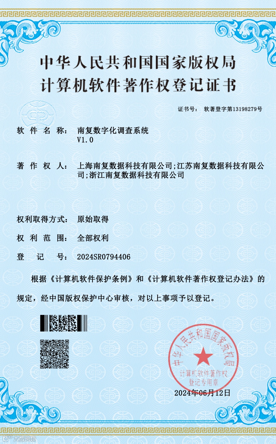南复数据近日成功获得“南复数字化调查系统 V1.0 ”和“南复智能化测评系统 V1.0 ”两项软件系统产品的计算机软件著作权登记证书。这不仅彰显了公司在调查领域深厚的自主研发实力和持续的技术创新能力,也预示着南复在该领域内取得了显著的技术突破和成果积累。