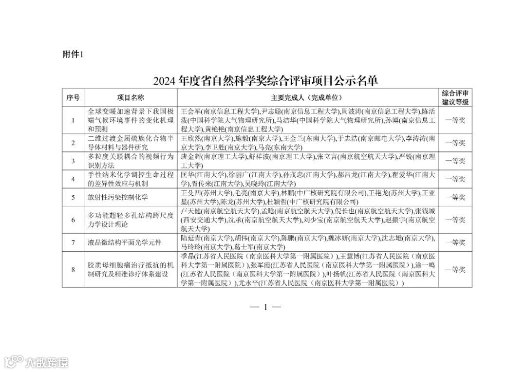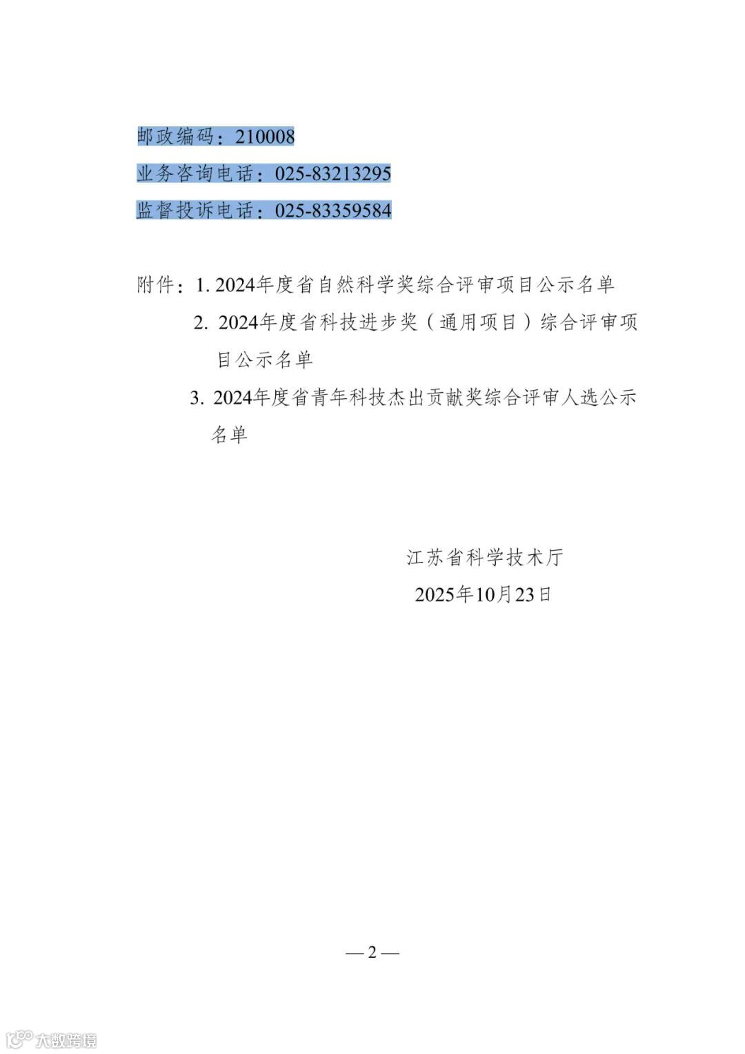 〖公示〗2024年度江苏省科学技术奖综合评审结果公示