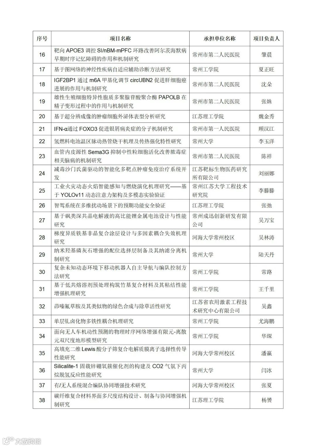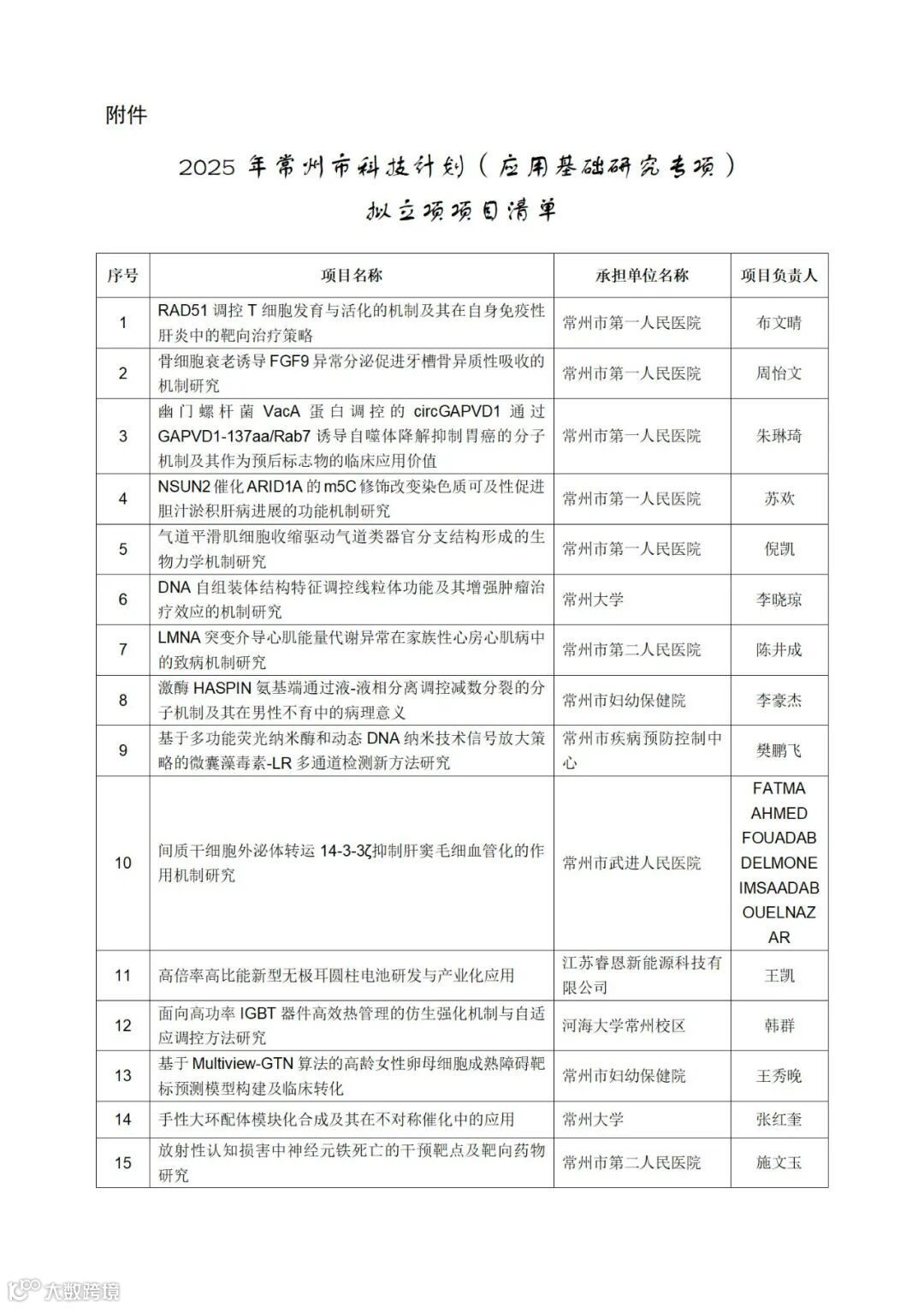 附件:2025年常州市科技计划(应用基础研究专项)拟立项项目清单