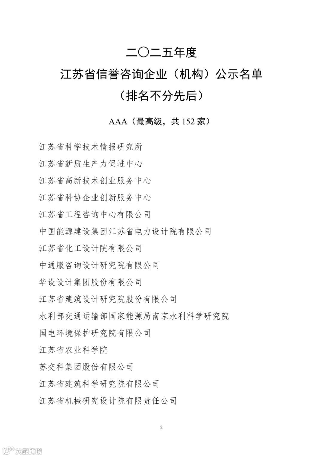 附件:2025年度江苏省信誉咨询企业(机构)公示名单
