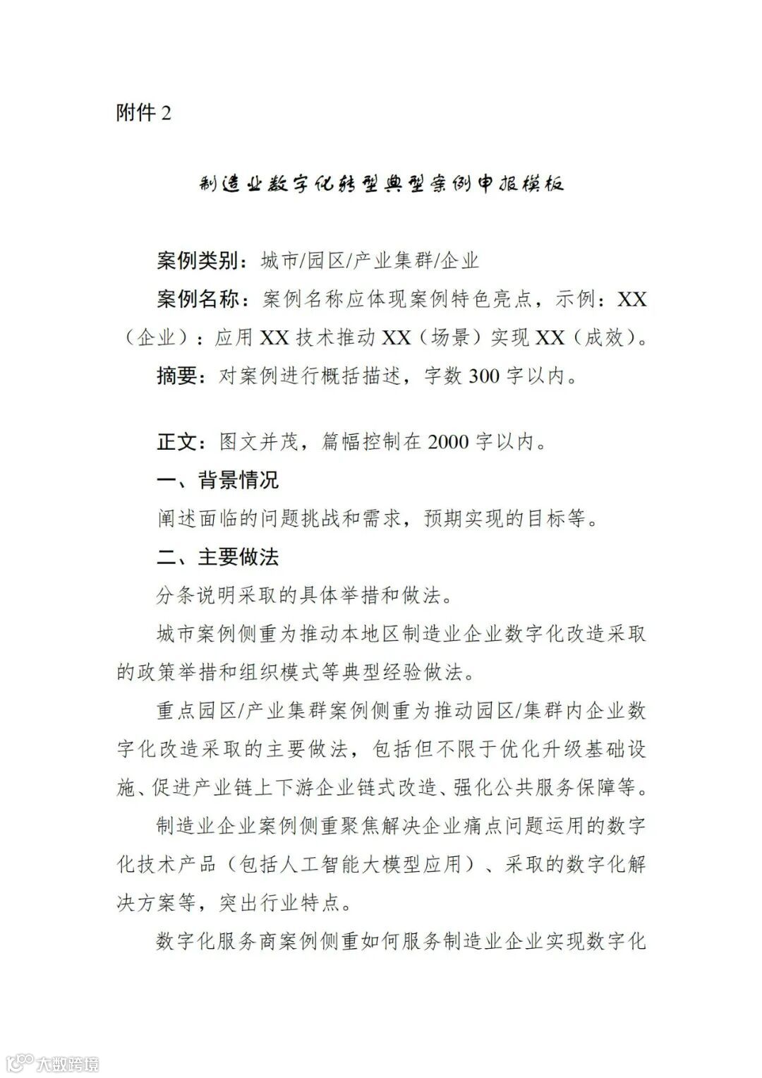 1.工业和信息化部规划司关于开展2025年度制造业数字化转型典型案例征集工作的通知