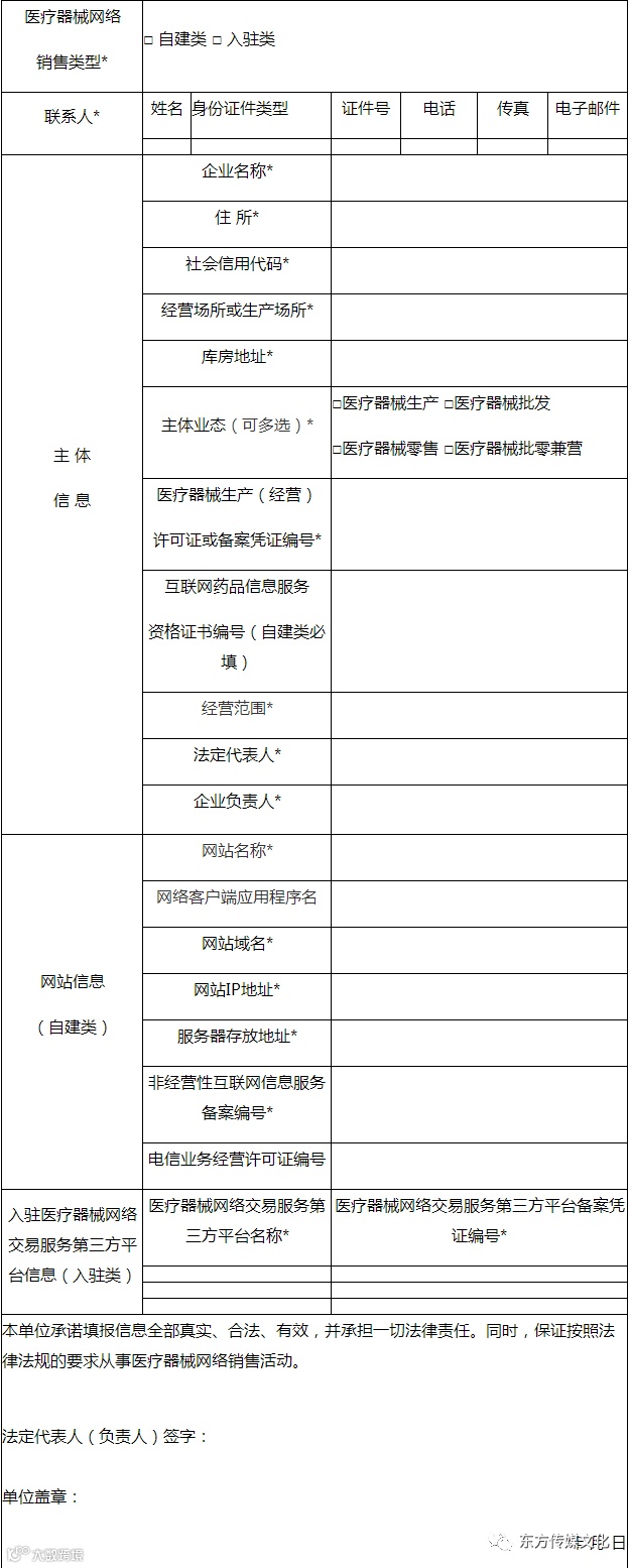 医疗器械网络销售信息表