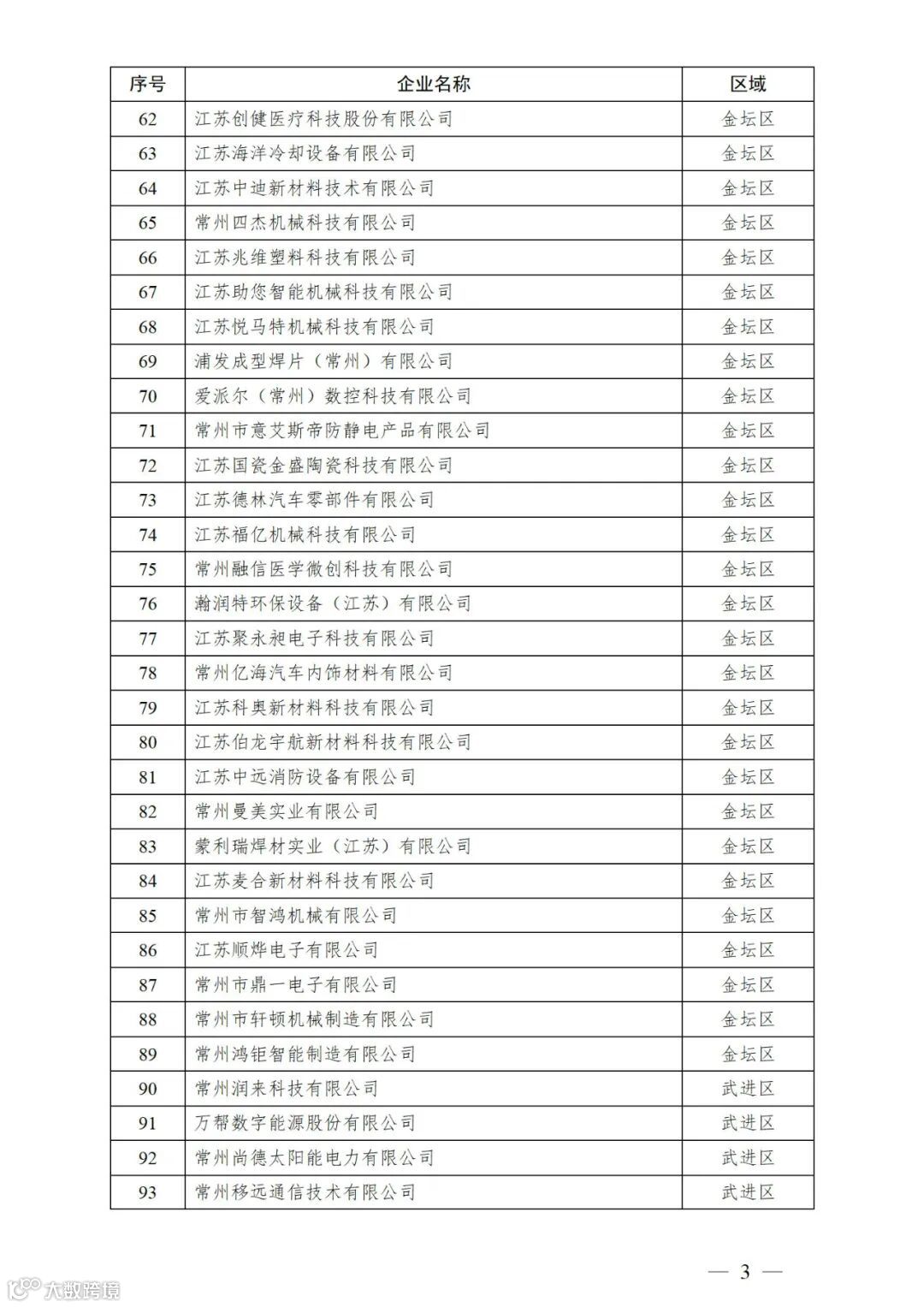 为加快高成长性科技企业集群培育,充分发挥瞪羚企业在我市高质量发展中的创新引领作用,根据《常州市瞪羚企业认定实施办法(2024修订版)》的有关规定,市科技局开展了2024年市瞪羚企业的认定工作,遴选出市瞪羚企业316家(名单详见附件),现予以发布。