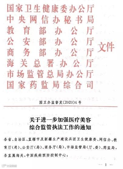 2020年4月,八部委联合发文《进一步加强医疗美容综合监管执法工作的通知》。