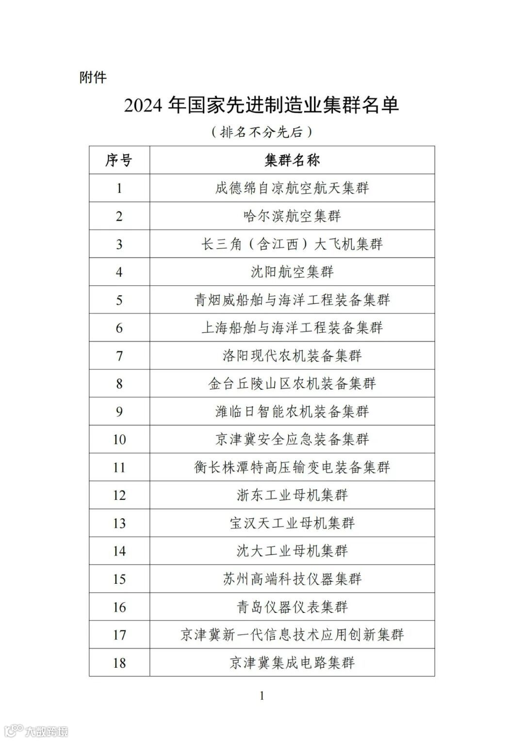 〖公示〗关于公布2024年国家先进制造业集群名单的通知