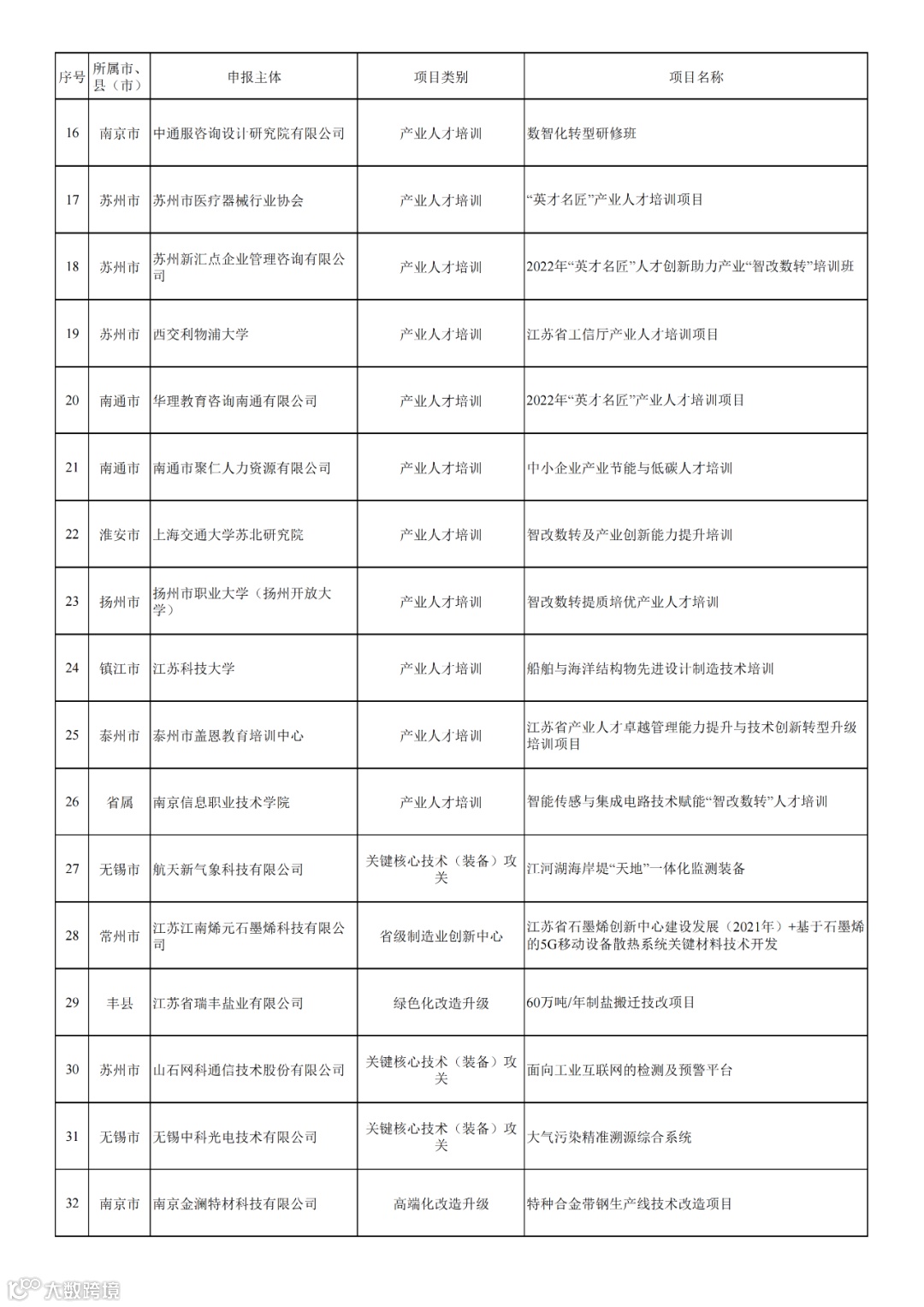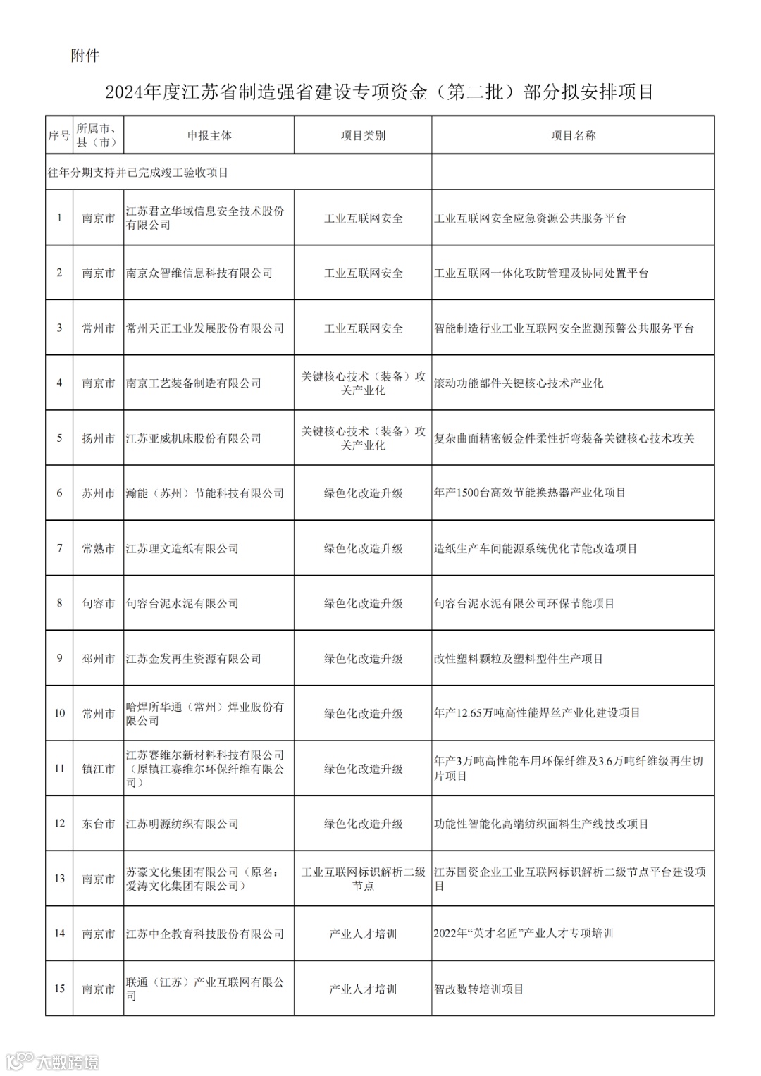 根据省工业和信息化厅、省财政厅《关于组织2024年度江苏省制造强省建设专项资金项目申报的通知》(苏工信综合〔2024〕102号),经规定程序,拟支持江苏君立华域信息安全技术股份有限公司“工业互联网安全应急资源公共服务平台”等32个项目,现予公示(见附件)。